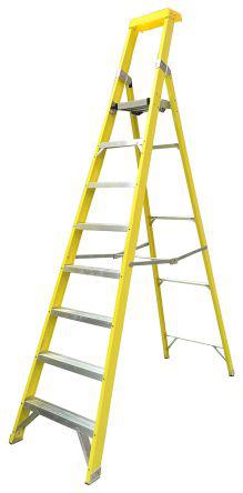 This is Step Ladder 8 steps Aluminium manufactured by RS Pro. The manufacturer part number is 914-3487. The typical product's weight is 15.3kg. It has 8 treads . It has a tread material of aluminium . It has about 2.2m platform height . The product has a/an aluminium stiles material . Its maximum load is approximately 150kg .