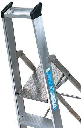 This is Step Ladder 4 steps Aluminium manufactured by Zarges. The manufacturer part number is 49674. The typical product's weight is 6.2kg. It has 4 treads . It has a tread material of aluminium . It has about 0.83m platform height . The product has a/an aluminium stiles material . Its maximum load is approximately 175kg .