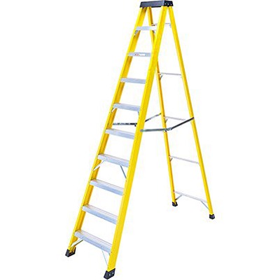 This is Aluminium Fiberglass 10 steps Step Ladder 1.91m open length manufactured by RS PRO. The manufacturer part number is 285-159. It has 10 treads . It has a tread material of aluminium . The product has a/an fibreglass stiles material . Moreover, it has approximately 1.91m open length .