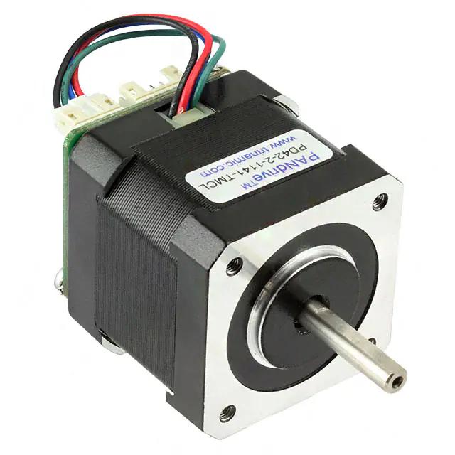 This is manufactured by Trinamic Motion Control GmbH. The manufacturer part number is PD42-2-1141. It is assigned with possible HTSUS value of 8501.10.6080. The product is rohs3 compliant. Moreover, it has wire leads with connector terminal style. The product provides 200 steps per revolution. The NEMA frame size of 17. It comes in hybrid configuration. It provides high accuracy of ±5%. It also exhibits voltage rating of 24vdc. The coil is a bipolar type. In addition, it is reach unaffected. The typical length of shaft and bearing is 0.945" (24.00mm). A typical value of 49.56 / 350 holding torque. Shaft with a 0.197" (5.00mm) diameter. It is shipped in box package . The product's diameters include square - 1.654" x 1.654" (42.00mm x 42.00mm). It has a long 18 weeks standard lead time. Additionally, the product's output is 2 a. Has a 1.8° step angle. Its typical moisture sensitivity level is 1 (unlimited). The splendid features of the product include integrated controller, flatted shaft. The typical product's weight is 0.486 lb (220.45 g). The product pandrive™, is a highly preferred choice for users. Moreover, it corresponds to pd42-2, a base product number of the product. The product is designated with the ear99 code number.