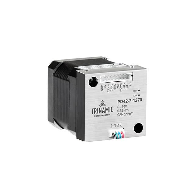 This is manufactured by Trinamic Motion Control GmbH. The manufacturer part number is PD42-2-1270-CANOPEN. It is assigned with possible HTSUS value of 8501.10.6080. The product is rohs3 compliant. Moreover, it has connector terminal style. The product has -20°c ~ 50°c operating temperature range. The product provides 200 steps per revolution. The NEMA frame size of 17. It comes in hybrid configuration. It holds up to 1.2 ohms coil resistance. It also exhibits voltage rating of 24vdc. The coil is a bipolar type. Features 57gcm² of rotor inertia. In addition, it is reach unaffected. It has a 1.220" (31.00mm) mounting hole space. A typical value of 51 / 360 holding torque. It provides high accuracy of ±5%. It is shipped in bulk package . The product's diameters include square - 1.654" x 1.654" (42.00mm x 42.00mm). It has a long 18 weeks standard lead time. Additionally, the product's output is 1 a. Has a 1.8° step angle. Its typical moisture sensitivity level is 1 (unlimited). The splendid features of the product include integrated controller, round shaft. The typical product's weight is 0.529 lb (239.95 g). The product pandrive™, is a highly preferred choice for users. Moreover, it corresponds to pd42, a base product number of the product. The product is designated with the ear99 code number.