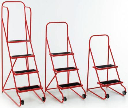 This is 1700mm 4 Rung Steel Steps manufactured by RS Pro. The manufacturer part number is 251-996. The typical product's weight is 16kg. It has a decent red colour. The product is made from highly stable and reliable rubber, steel. In addition, the number of steps are 4 . It has about 1000mm platform height . Moreover, it has 1700mm of overall height.