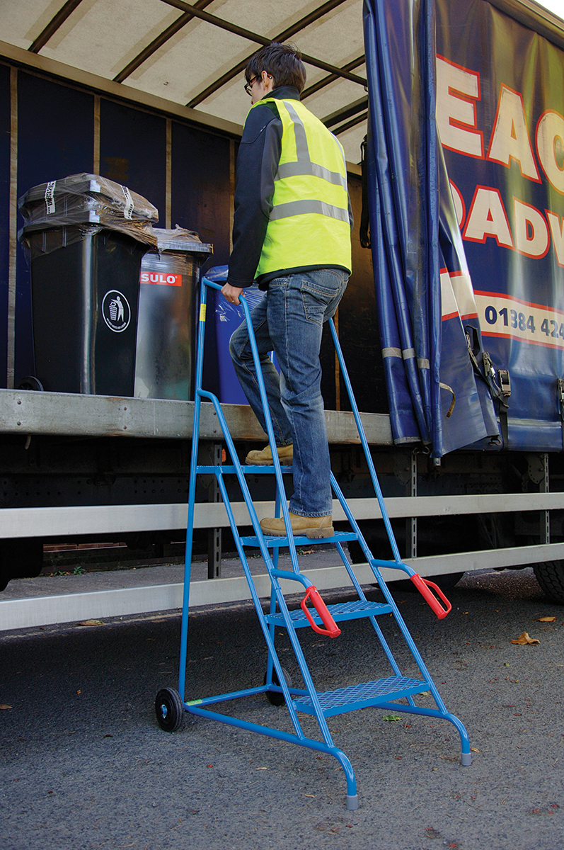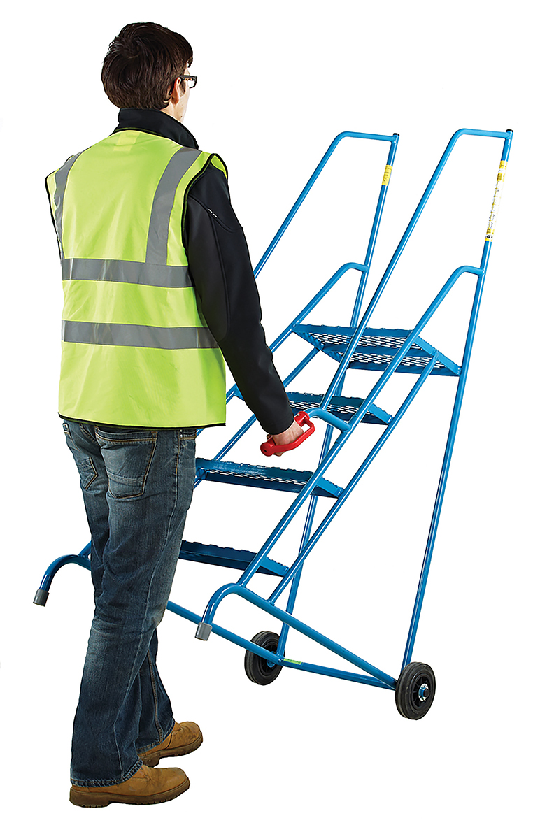 This is 1710mm 4 Rung Steel Steps manufactured by RS Pro. The manufacturer part number is 103-8704. The typical product's weight is 20kg. It has a decent blue colour. The product is made from highly stable and reliable steel. In addition, the number of steps are 4 . It has about 1m platform height . Moreover, it has 1.710m of overall height.