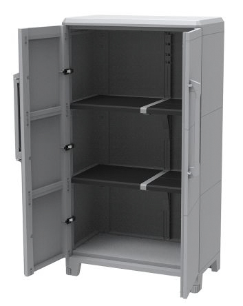 This is 2 Doors Plastic Lockable Floor Standing Tool Cabinet 780 x 430 x 1430mm manufactured by RS Pro. The manufacturer part number is 136-8878. It has a floor standing trait yes . It contains 2 dedicated doors . The given dimensions of the product include 780 x 430 x 1430mm. It has a decent grey colour. The product is made from highly stable and reliable plastic. In addition, the height is 1430mm. Furthermore, the product is 780mm wide. The product comes in 430mm depth. It contains 2 high quality shelves . It has a lockable nature yes . It comes in transforming modular configuration.