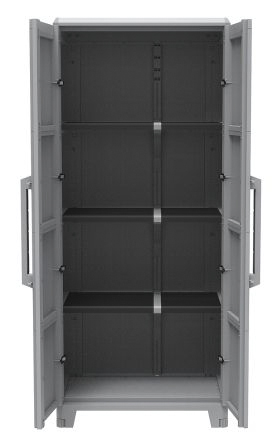 This is 2 Doors Plastic Lockable Floor Standing Tool Cabinet 780 x 430 x 1840mm manufactured by RS Pro. The manufacturer part number is 136-8877. It has a floor standing trait yes . It contains 2 dedicated doors . The given dimensions of the product include 780 x 430 x 1840mm. It has a decent grey colour. The product is made from highly stable and reliable plastic. In addition, the height is 1840mm. Furthermore, the product is 780mm wide. The product comes in 430mm depth. It contains 3 high quality shelves . It has a lockable nature yes . It comes in transforming modular configuration.