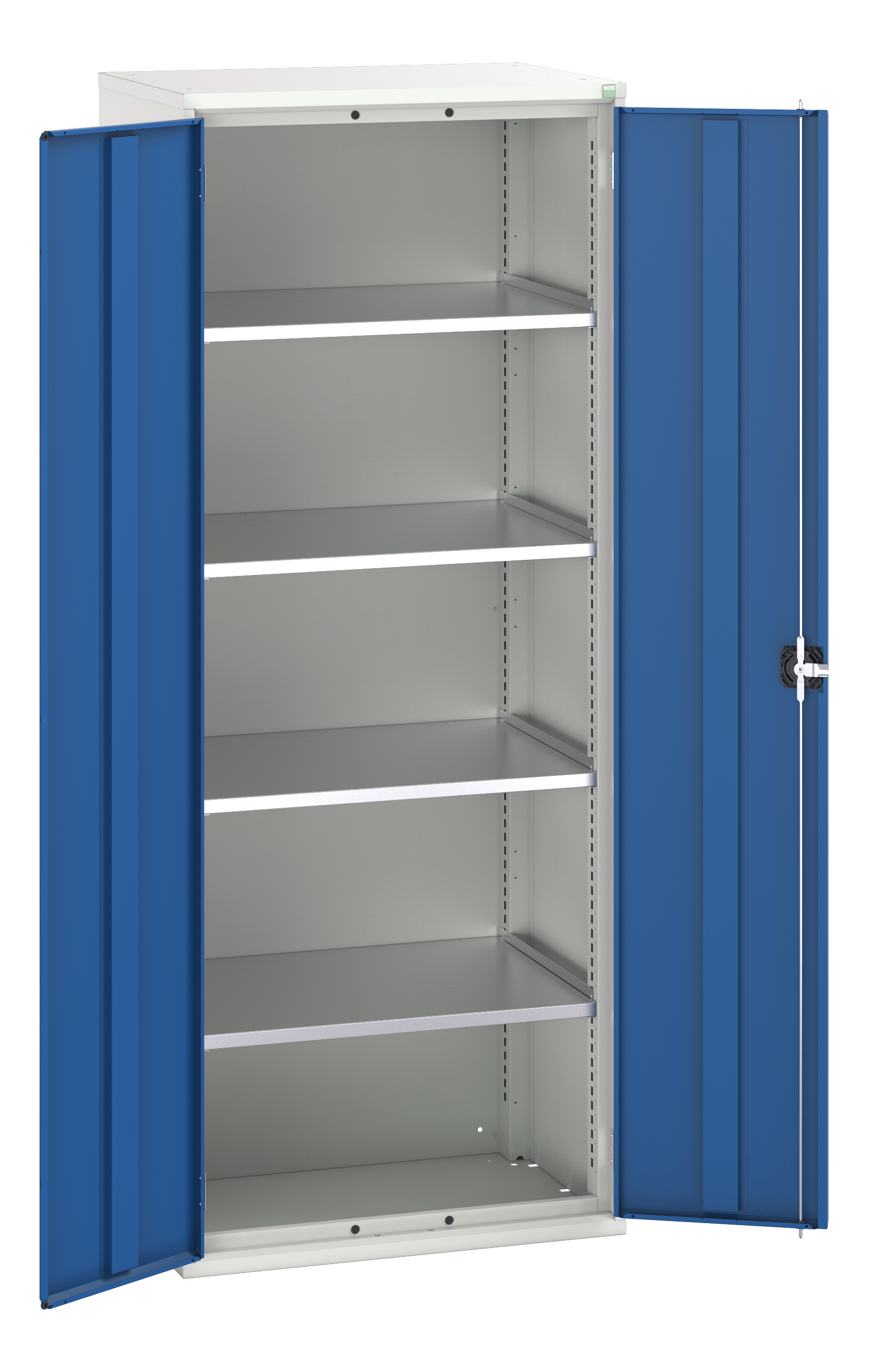 This is 2 Doors Steel Lockable Floor Standing Shelf Dividers 2000 x 800 x 550mm manufactured by Bott. The manufacturer part number is 16926167.11. It has a floor standing trait yes . It contains 2 dedicated doors . The given dimensions of the product include 2000 x 800 x 550mm. It has a decent blue, grey colour. The product is made from highly stable and reliable steel. In addition, the height is 2000mm. Furthermore, the product is 800mm wide. The product comes in 550mm depth. It contains 4 high quality shelves . It has a lockable nature yes . It comes in cupboard with shelf configuration.
