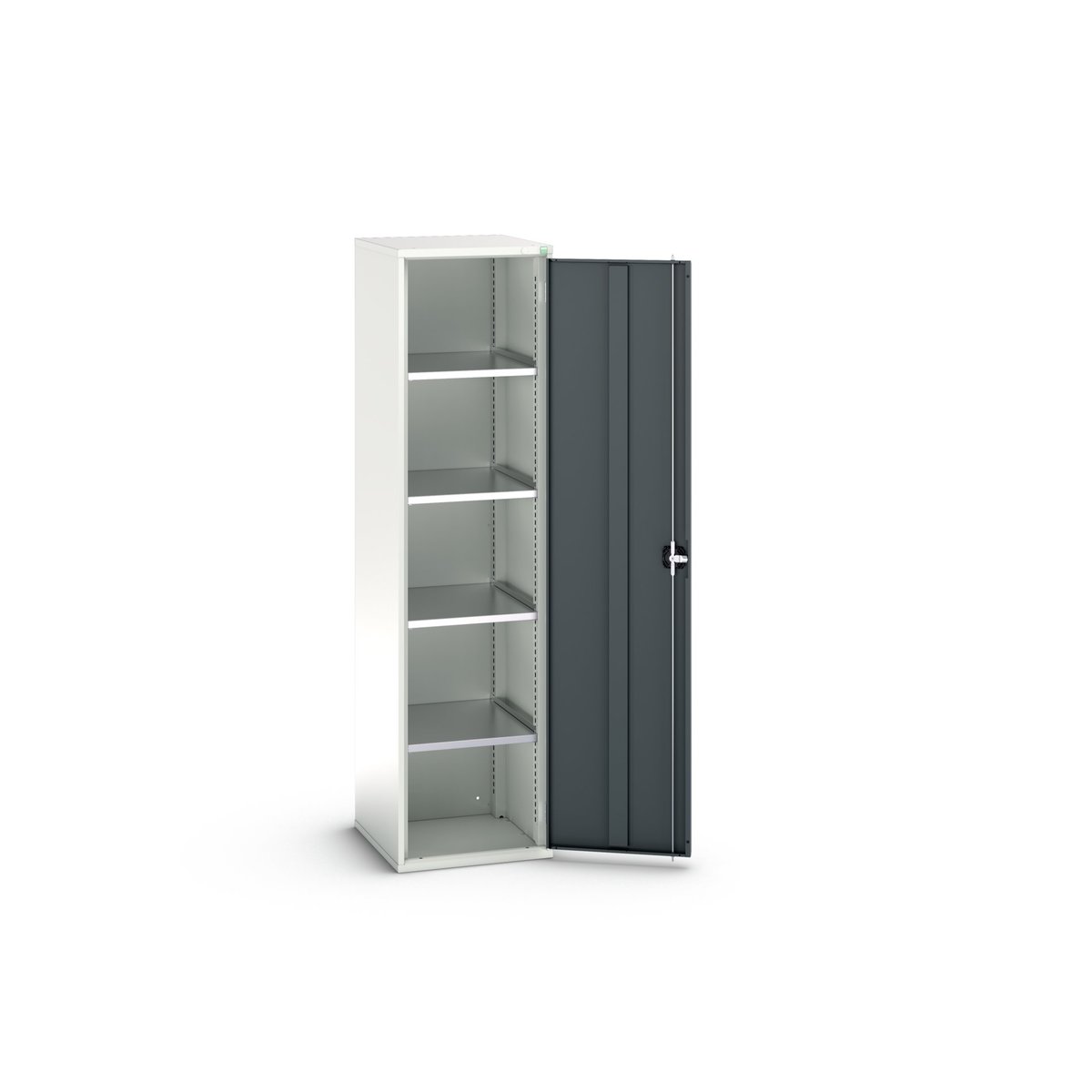This is 1 Door Sheet Steel Lockable Floor Standing Cupboard 525 x 550 x 2000mm manufactured by Bott. The manufacturer part number is 16926067.19. It has a floor standing trait yes . It contains 1 dedicated doors . It contains 4 high quality shelves . The given dimensions of the product include 525 x 550 x 2000mm. The product is made from highly stable and reliable sheet steel. It includes 0 high-quality drawers . It has a lockable nature yes . It comes in shelf cupboard configuration.