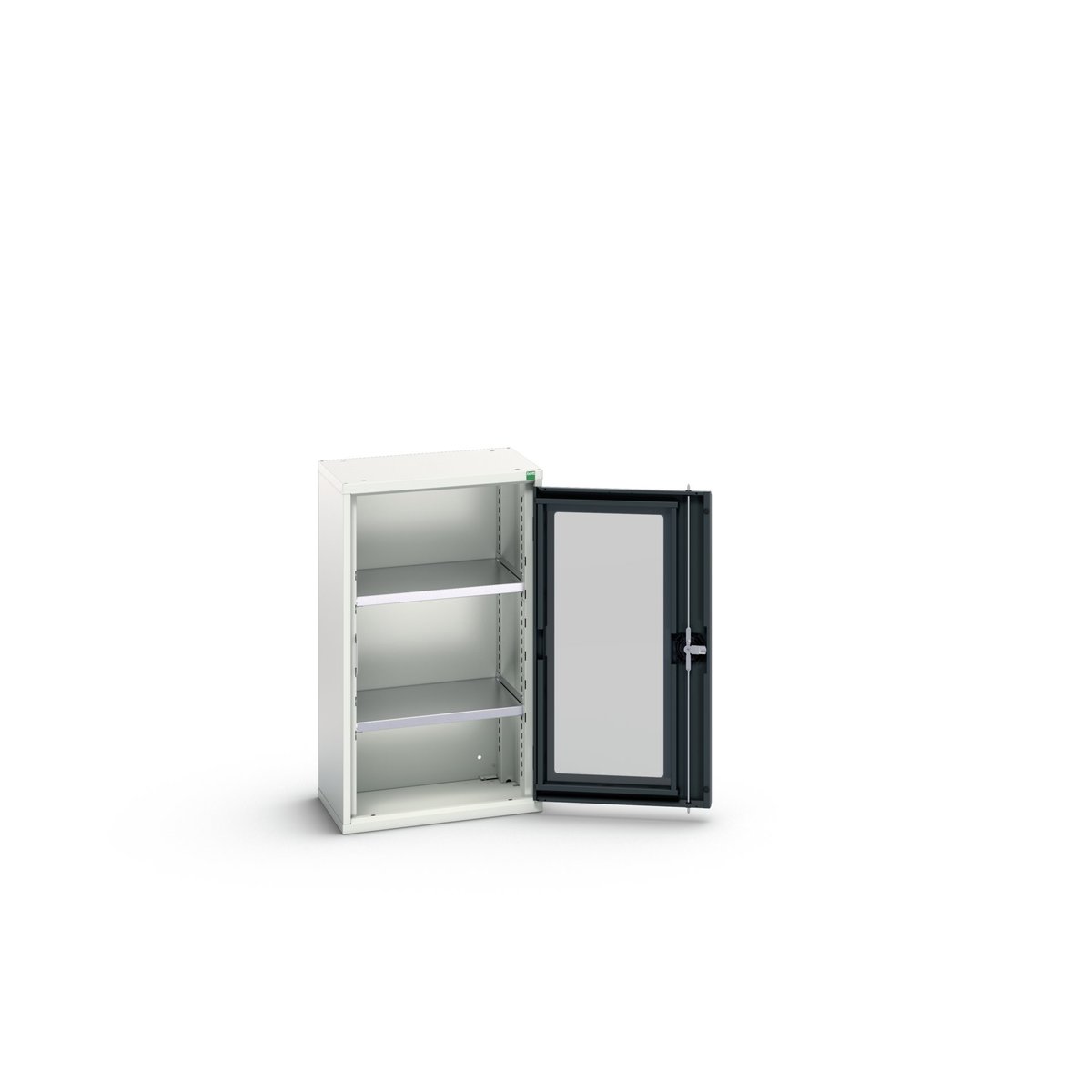 This is 1 Door Sheet Steel Lockable Floor Standing Cupboard 525 x 350 x 900mm manufactured by Bott. The manufacturer part number is 16926071.19. It has a floor standing trait yes . It contains 1 dedicated doors . It contains 2 high quality shelves . The given dimensions of the product include 525 x 350 x 900mm. The product is made from highly stable and reliable sheet steel. It includes 0 high-quality drawers . It has a lockable nature yes . It comes in cupboard with shelf configuration.