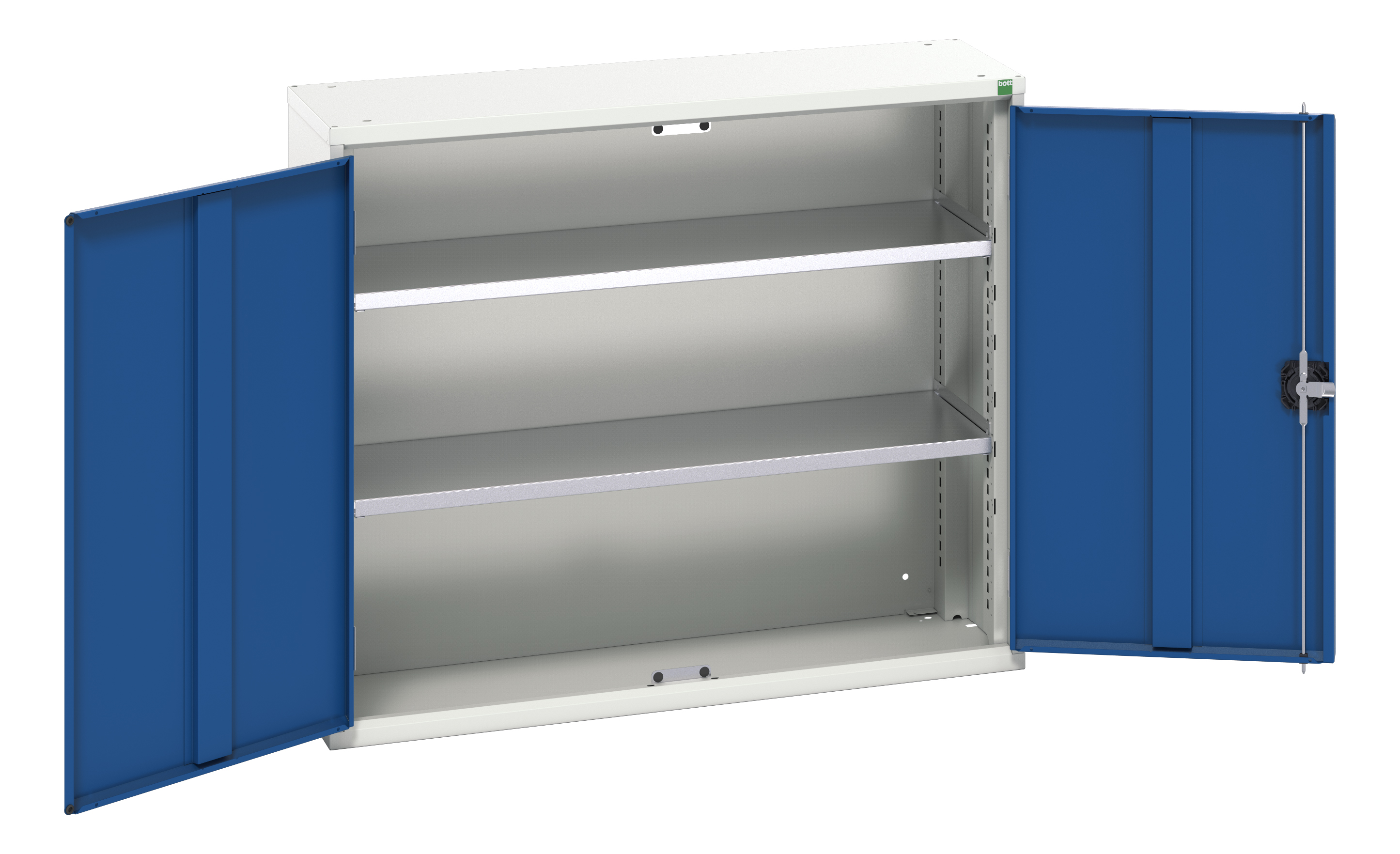 This is 2 Door Sheet Steel Lockable Floor Standing Cupboard 1050 x 350 x 900mm manufactured by Bott. The manufacturer part number is 16926211.11. It has a floor standing trait yes . It contains 2 dedicated doors . It contains 2 high quality shelves . The given dimensions of the product include 1050 x 350 x 900mm. The product is made from highly stable and reliable sheet steel. It includes 0 high-quality drawers . It has a lockable nature yes . It comes in cupboard with shelf configuration.