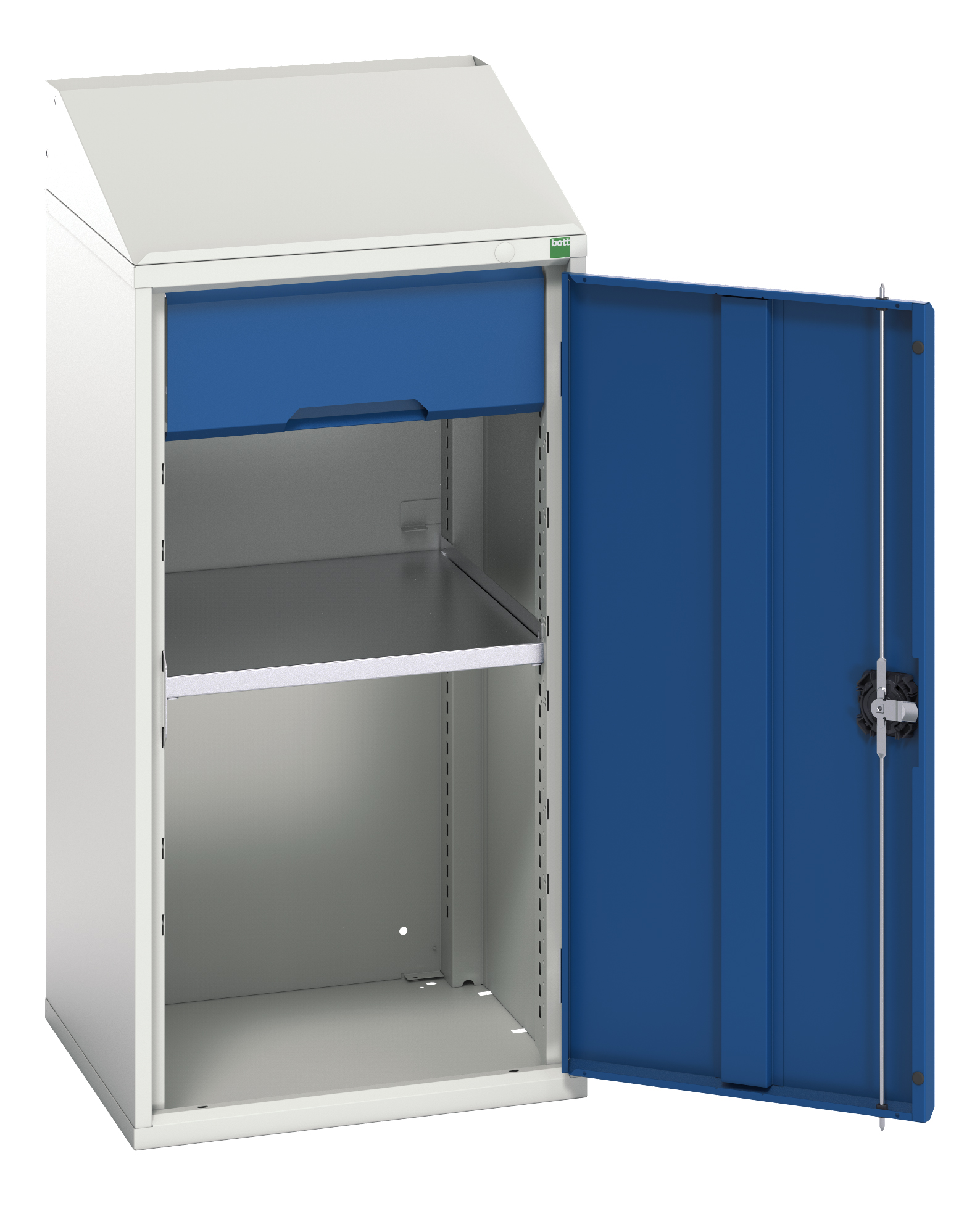 This is 1 Door Sheet Steel Lockable Floor Standing Cupboard 525 x 550 x 1130mm manufactured by Bott. The manufacturer part number is 16926370.11. It has a floor standing trait yes . It contains 1 dedicated doors . It contains 1 high quality shelves . The given dimensions of the product include 525 x 550 x 1130mm. The product is made from highly stable and reliable sheet steel. It includes 1 high-quality drawers . It has a lockable nature yes . It comes in cupboard with shelf configuration.