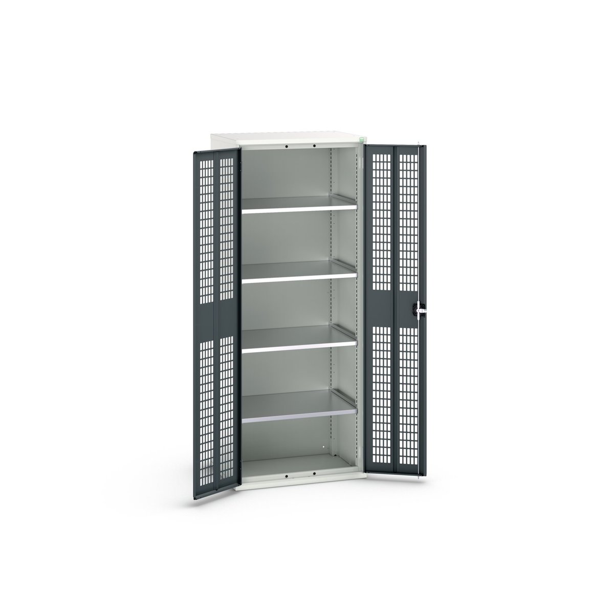 This is 2 Door Sheet Steel Lockable Floor Standing Cupboard 800 x 550 x 2000mm manufactured by Bott. The manufacturer part number is 16926743.19. It has a floor standing trait yes . It contains 2 dedicated doors . It contains 4 high quality shelves . The given dimensions of the product include 800 x 550 x 2000mm. The product is made from highly stable and reliable sheet steel. It includes 0 high-quality drawers . It has a lockable nature yes . It comes in cupboard with shelf configuration.