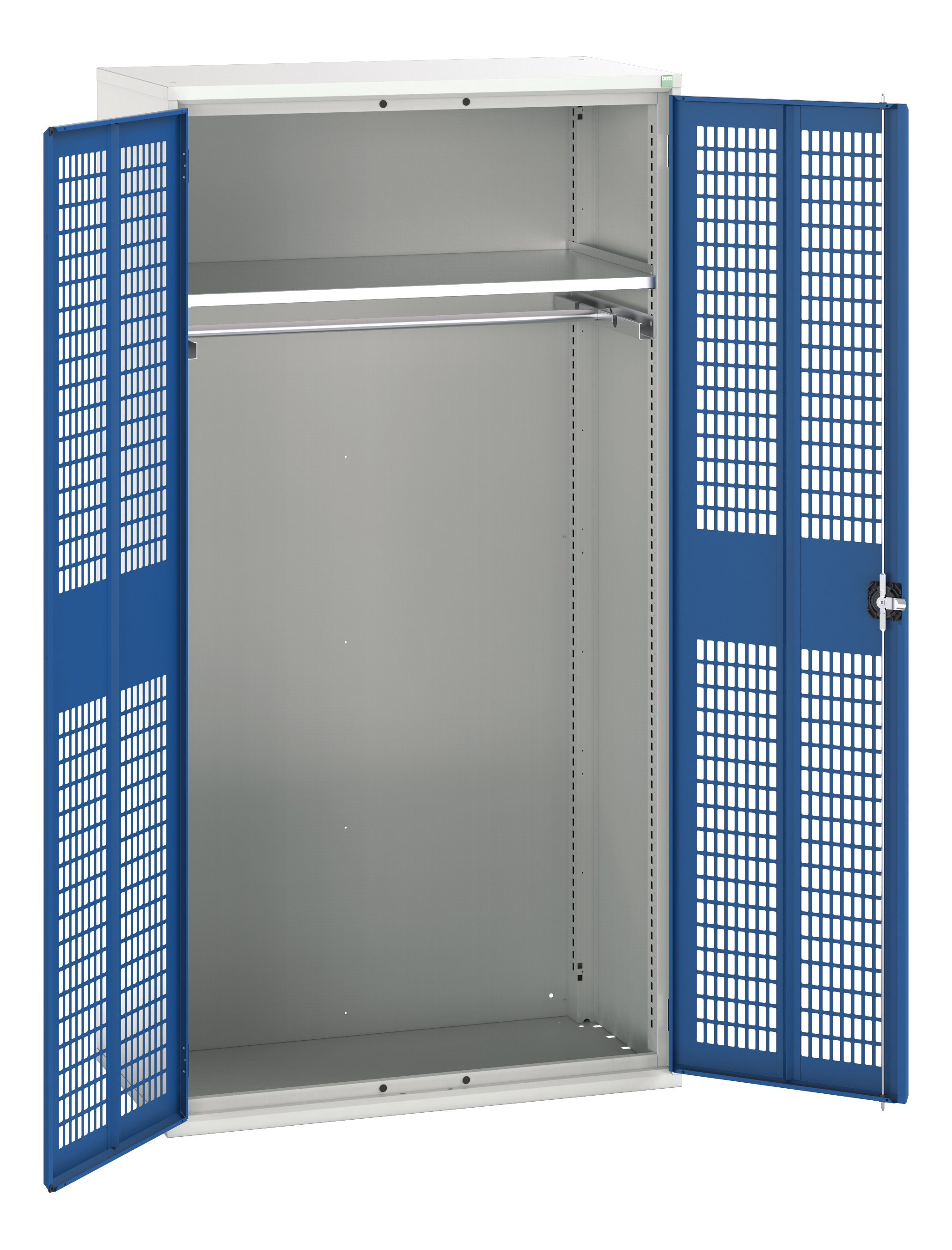 This is 2 Door Sheet Steel Lockable Floor Standing Cupboard 1050 x 550 x 2000mm manufactured by Bott. The manufacturer part number is 16926771.11. It has a floor standing trait yes . It contains 2 dedicated doors . It contains 1 high quality shelves . The given dimensions of the product include 1050 x 550 x 2000mm. The product is made from highly stable and reliable sheet steel. It includes 0 high-quality drawers . It has a lockable nature yes . It comes in kitted cupboard configuration.