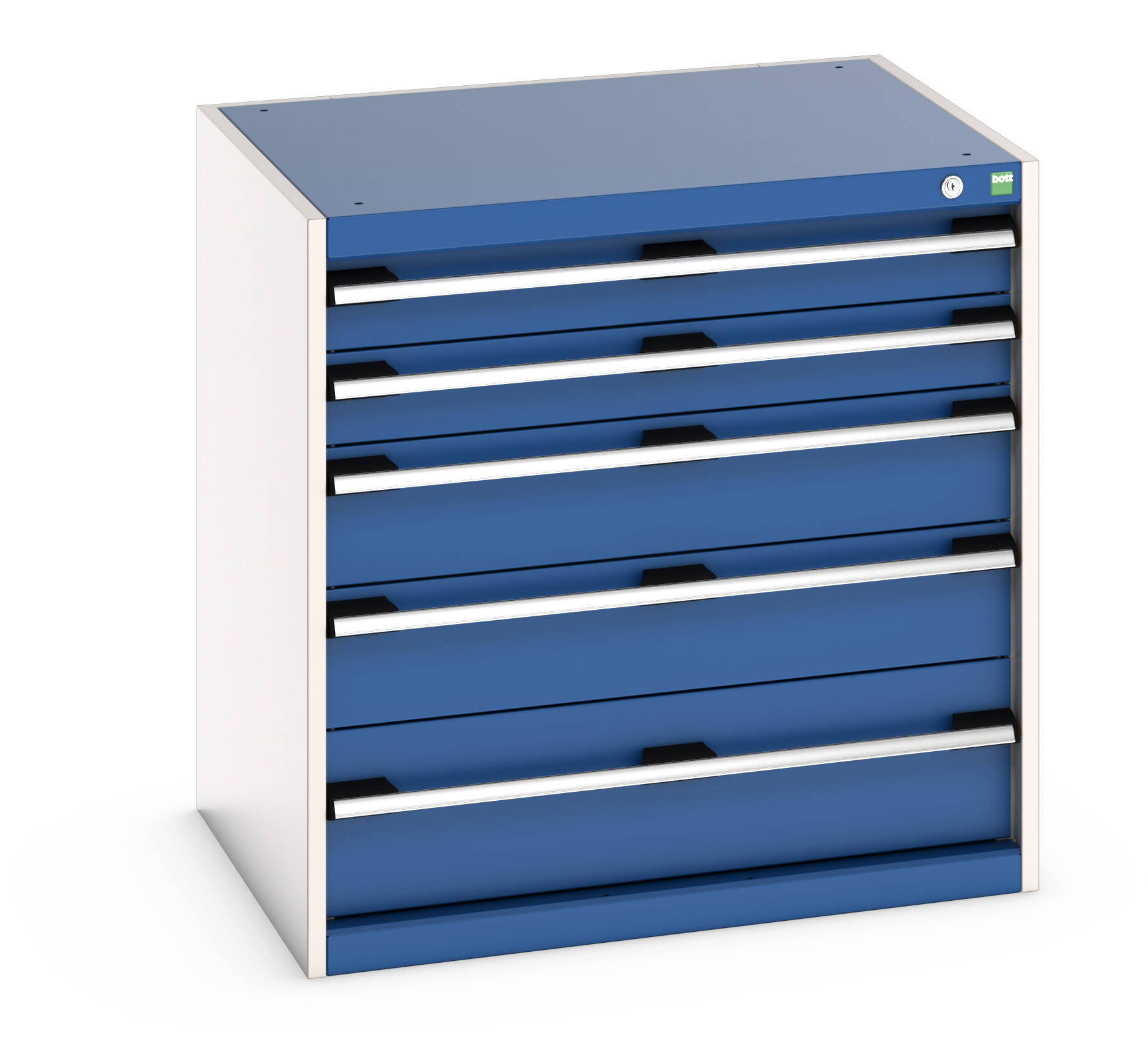 This is 5 Drawer Sheet Steel Floor Standing Cabinet 800 x 650 x 800mm manufactured by Bott. The manufacturer part number is 40020025.11V. It has a floor standing trait yes . The given dimensions of the product include 800 x 650 x 800mm. The product is made from highly stable and reliable sheet steel. It includes 5 high-quality drawers . It comes in cabinet configuration.
