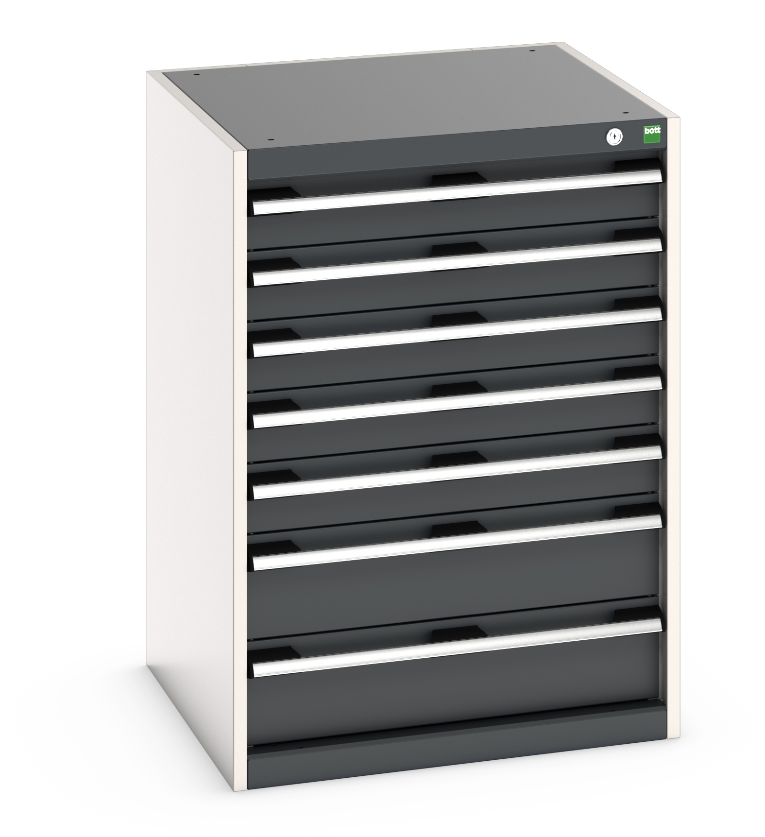 This is 7 Drawer Sheet Steel Floor Standing Cabinet 650 x 650 x 900mm manufactured by Bott. The manufacturer part number is 40019051.19V. It has a floor standing trait yes . It includes 7 high-quality drawers . The product is made from highly stable and reliable sheet steel. It comes in cabinet configuration. The given dimensions of the product include 650 x 650 x 900mm.