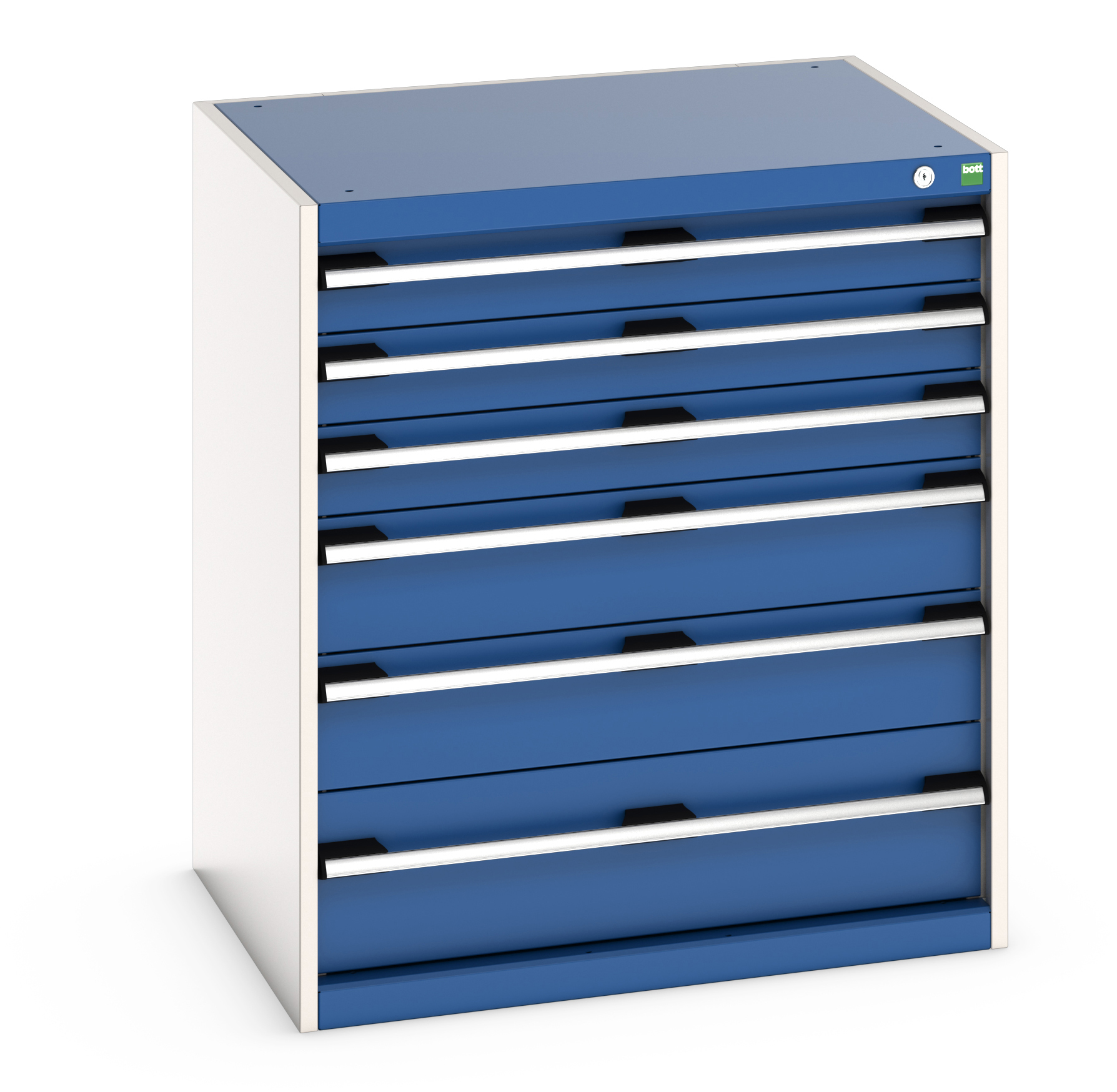 This is 6 Drawer Sheet Steel Floor Standing Cabinet 800 x 650 x 900mm manufactured by Bott. The manufacturer part number is 40020120.11V. It has a floor standing trait yes . The given dimensions of the product include 800 x 650 x 900mm. The product is made from highly stable and reliable sheet steel. It includes 6 high-quality drawers . It comes in cabinet configuration.