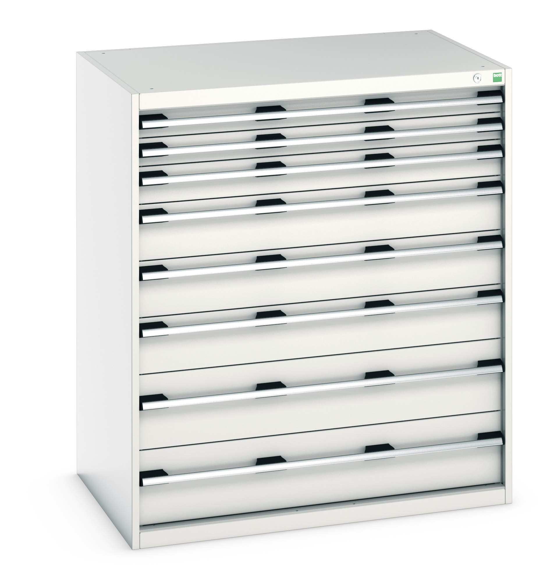 This is 8 Drawer Sheet Steel Floor Standing Cabinet 1050 x 750 x 1200mm manufactured by Bott. The manufacturer part number is 40029031.16V. It has a floor standing trait yes . The given dimensions of the product include 1050 x 750 x 1200mm. The product is made from highly stable and reliable sheet steel. It includes 8 high-quality drawers . It comes in cabinet configuration.