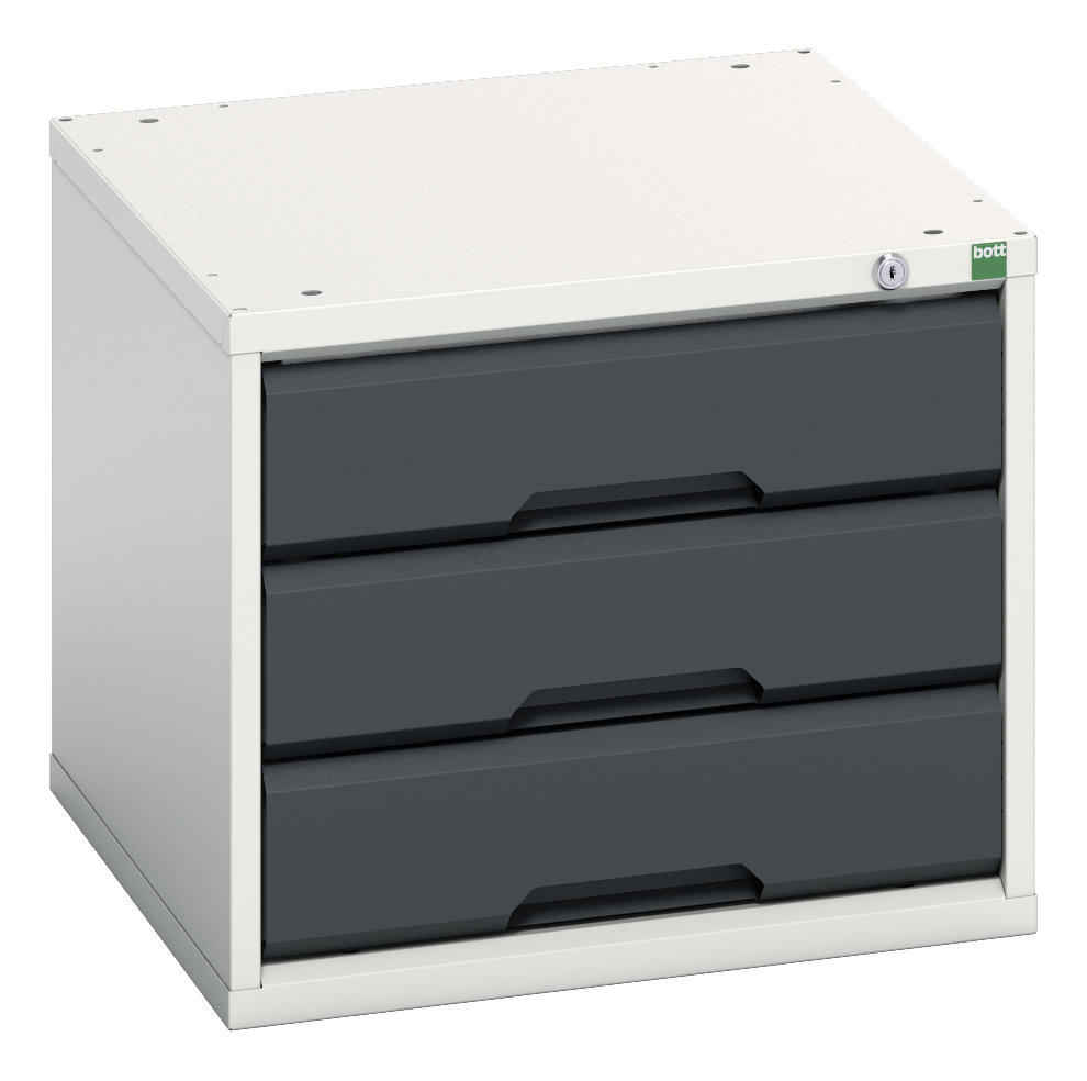 This is 3 Drawer Sheet Steel Floor Standing Cabinet 525 x 550 x 450mm manufactured by Bott. The manufacturer part number is 16925001.19. It has a floor standing trait yes . The given dimensions of the product include 525 x 550 x 450mm. The product is made from highly stable and reliable sheet steel. It includes 3 high-quality drawers . It comes in cabinet configuration.