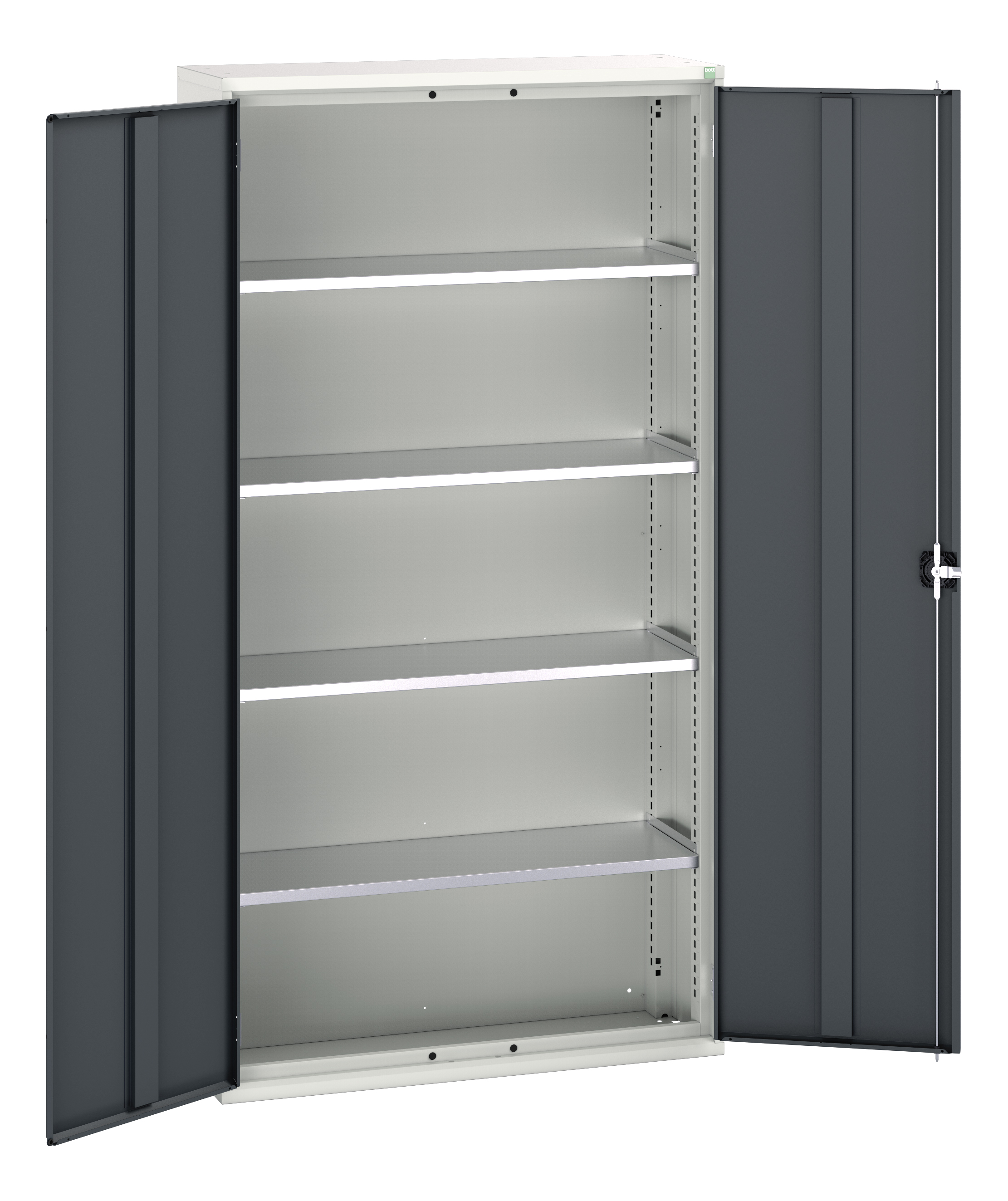 This is 2 Door Sheet Steel Floor Standing Cupboard 1050 x 350 x 2000mm manufactured by Bott. The manufacturer part number is 16926219.19. It has a floor standing trait yes . It contains 2 dedicated doors . The given dimensions of the product include 1050 x 350 x 2000mm. The product is made from highly stable and reliable sheet steel. It contains 4 high quality shelves . It comes in shelf cupboard configuration.