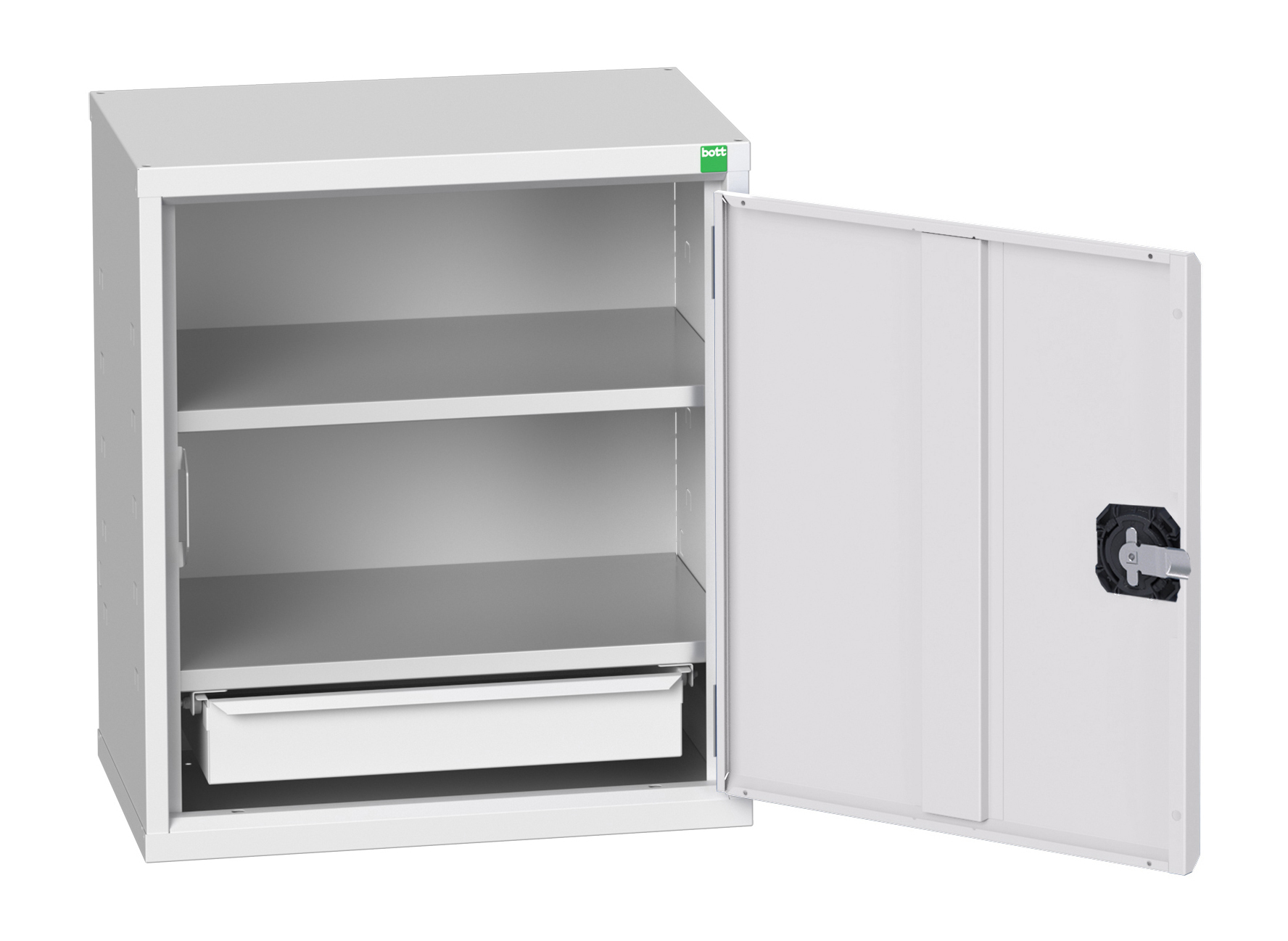 This is 1 Door 1 Drawer Sheet Steel No Cupboard 525 x 350 x 600mm manufactured by Bott. The manufacturer part number is 16929003.16. It has a floor standing trait no . It contains 1 dedicated doors . The given dimensions of the product include 525 x 350 x 600mm. The product is made from highly stable and reliable sheet steel. It contains 2 high quality shelves . It includes 1 high-quality drawers . It comes in shelf cupboard configuration.
