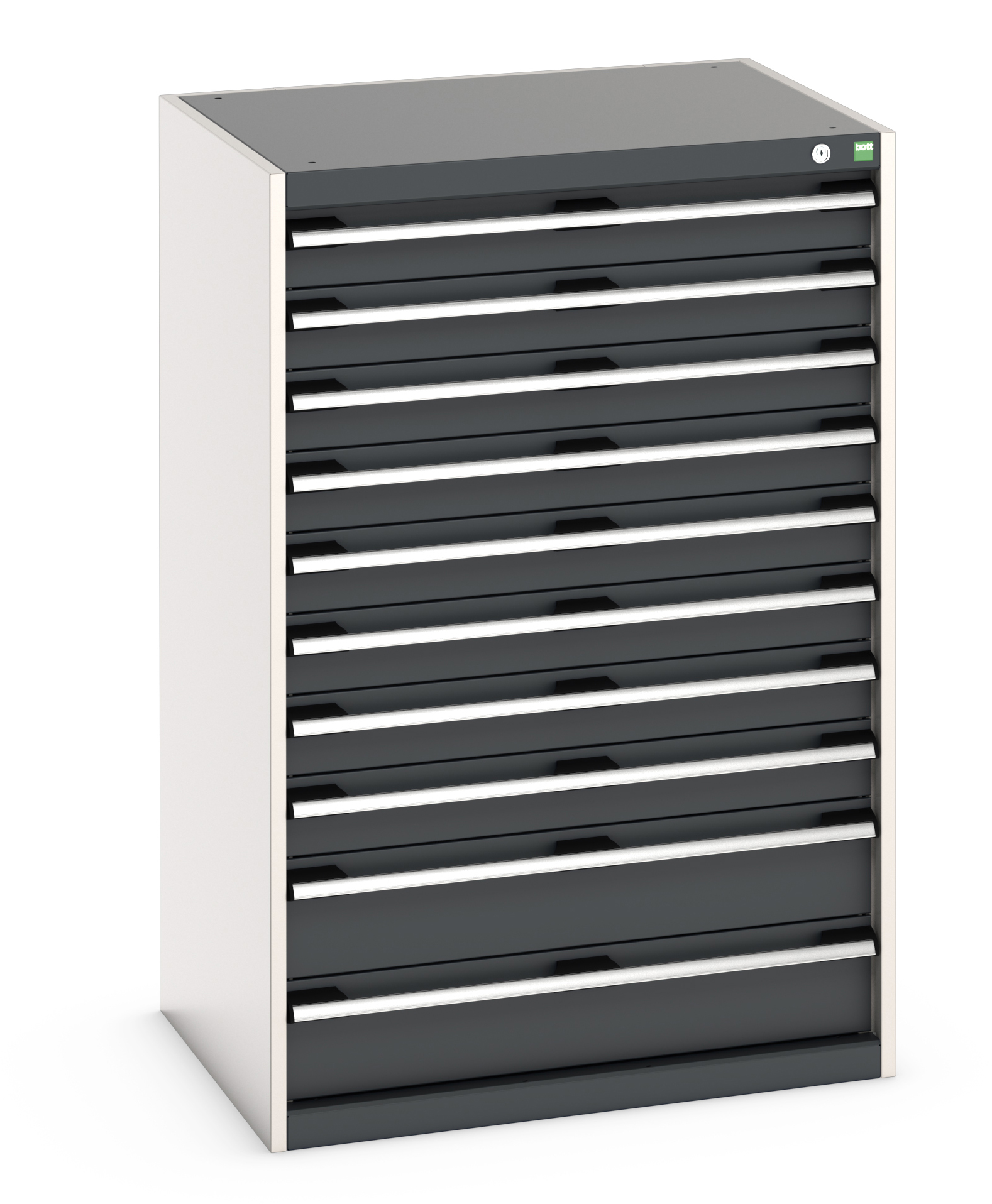 This is 10 Drawer Sheet Steel Floor Standing Cabinet 800 x 650 x 1200mm manufactured by Bott. The manufacturer part number is 40020065.19V. It has a floor standing trait yes . The given dimensions of the product include 800 x 650 x 1200mm. The product is made from highly stable and reliable sheet steel. It includes 10 high-quality drawers . It comes in cabinet configuration.