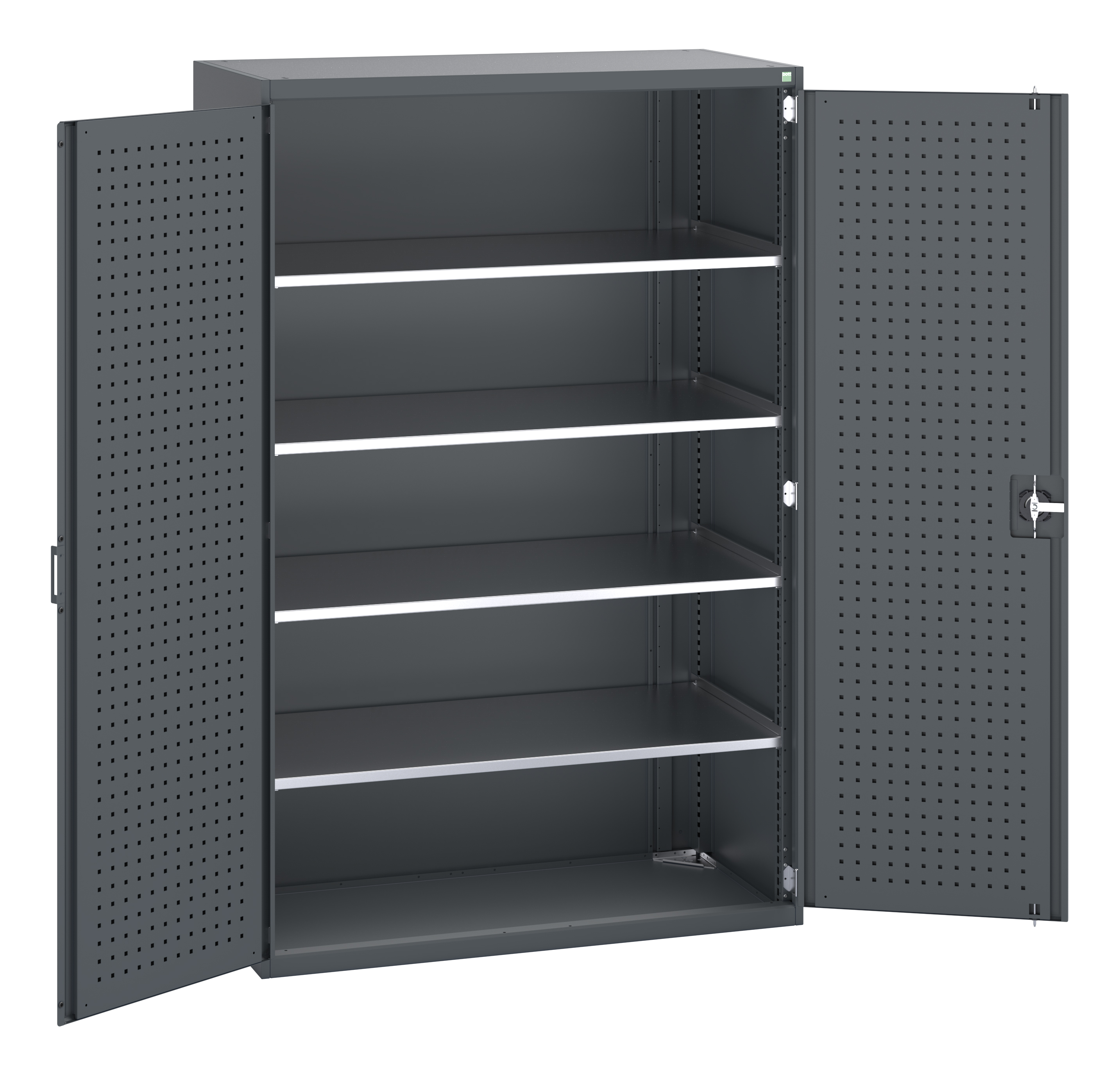 This is 2 Door Sheet Steel Floor Standing Cupboard 1300 x 650 x 2000mm manufactured by Bott. The manufacturer part number is 40022053.77V. It has a floor standing trait yes . It contains 2 dedicated doors . The given dimensions of the product include 1300 x 650 x 2000mm. The product is made from highly stable and reliable sheet steel. It contains 4 high quality shelves . It comes in shelf cupboard configuration.