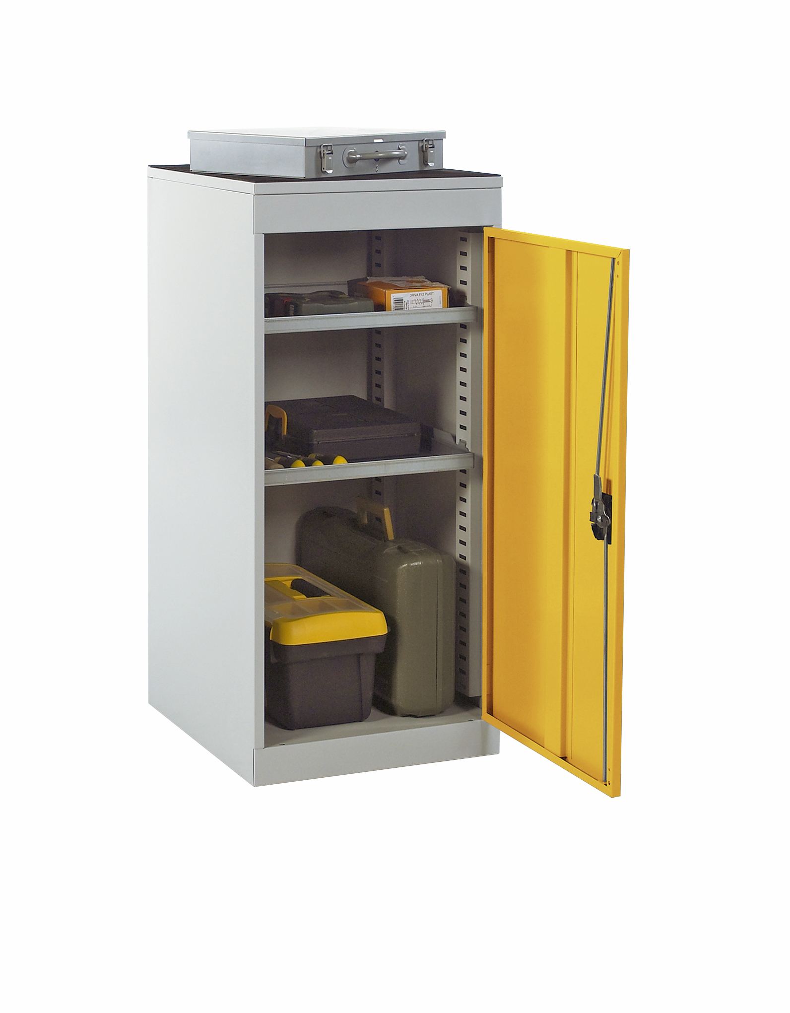 This is 1 Door Steel Floor Standing Tool Cabinet 984 X 477 X 505mm manufactured by RS PRO. The manufacturer part number is 213-374. It has a floor standing trait yes . It contains 1 dedicated doors . The given dimensions of the product include 984 x 477 x 505mm. The product is made from highly stable and reliable steel. It contains 2 high quality shelves . It comes in cabinet configuration.
