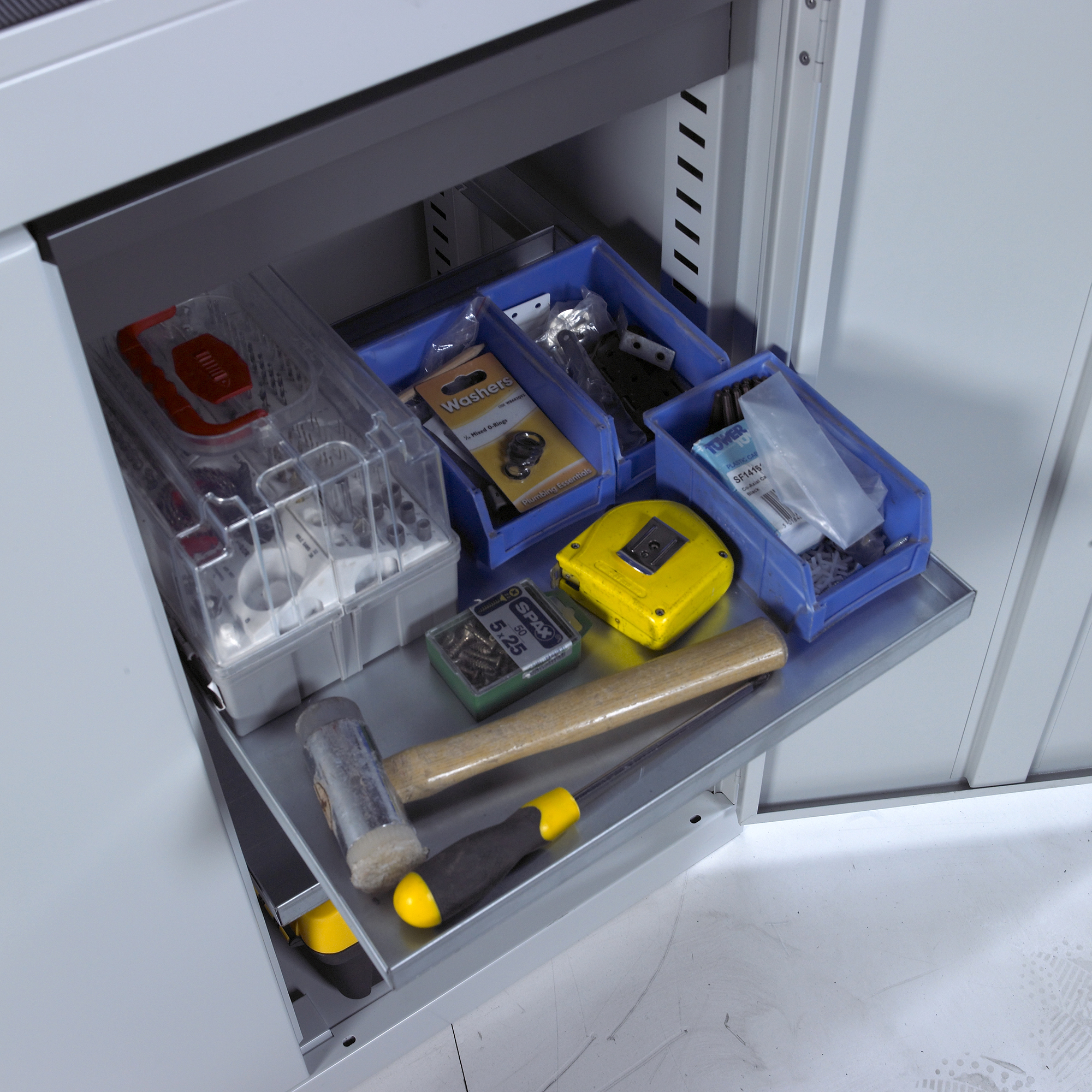 This is 1 Door Steel Floor Standing Tool Cabinet 984 X 477 X 505mm manufactured by RS PRO. The manufacturer part number is 213-375. It has a floor standing trait yes . It contains 1 dedicated doors . The given dimensions of the product include 984 x 477 x 505mm. The product is made from highly stable and reliable steel. It contains 2 high quality shelves . It comes in cabinet configuration.
