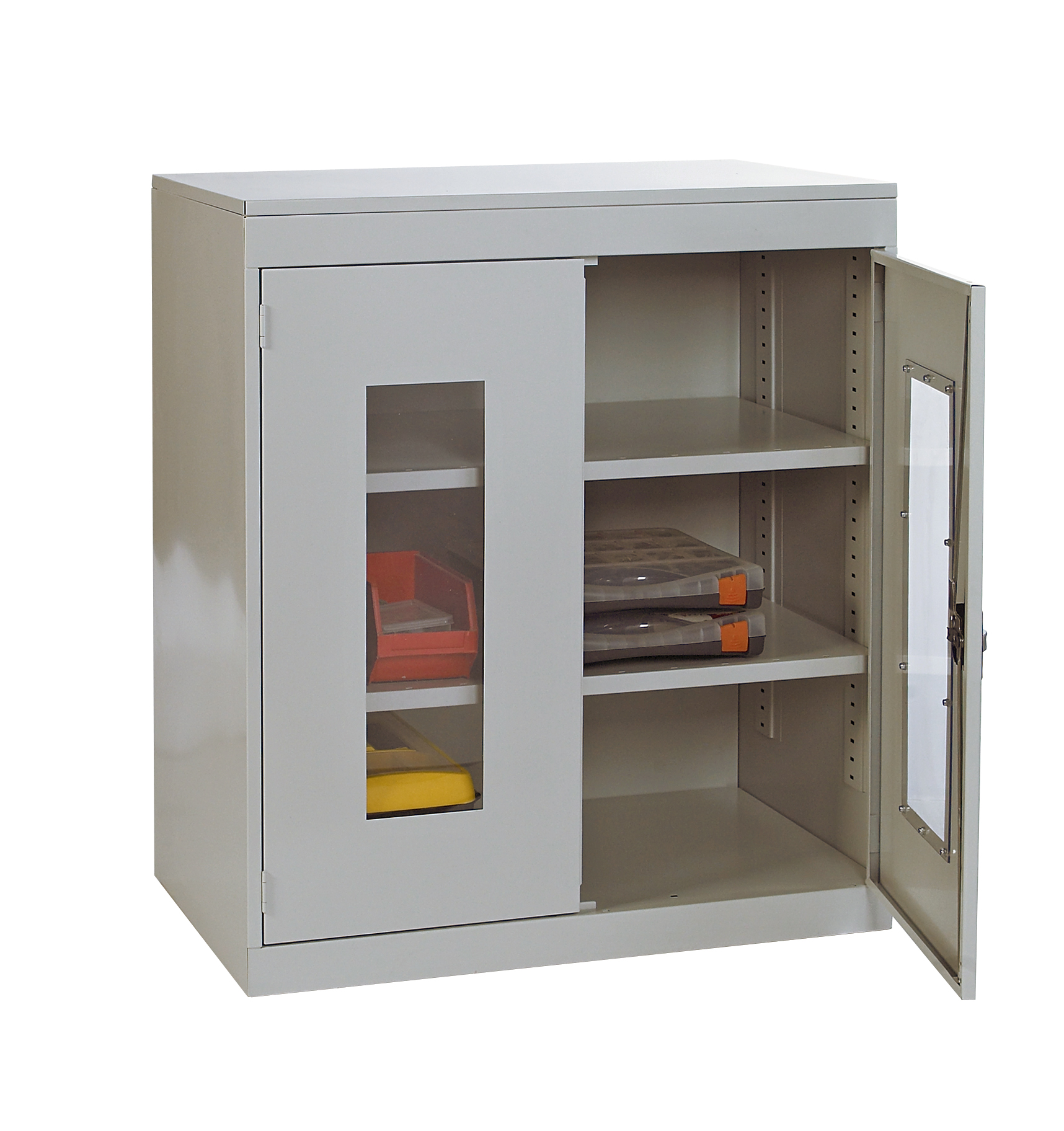 This is 1 Door Steel Floor Standing Cupboard 984 X 915 X 505mm manufactured by RS PRO. The manufacturer part number is 213-407. It has a floor standing trait yes . It contains 1 dedicated doors . The given dimensions of the product include 984 x 915 x 505mm. The product is made from highly stable and reliable steel. It contains 2 high quality shelves . It comes in cupboard with shelf configuration.