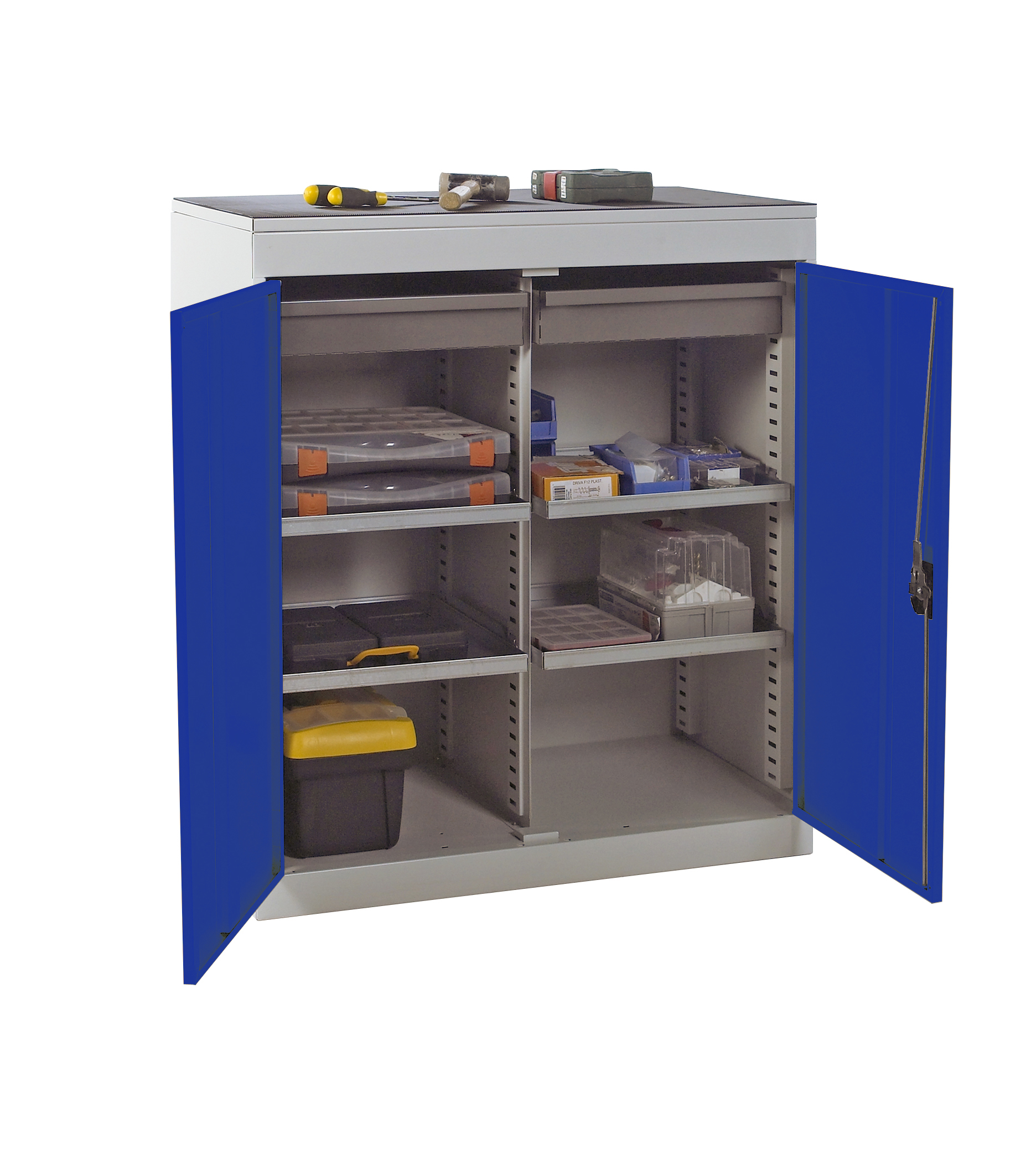 This is Steel Floor Standing Tool Cabinet 984 X 915 X 505mm manufactured by RS PRO. The manufacturer part number is 214-393. It has a floor standing trait yes . The product is made from highly stable and reliable steel. It comes in cabinet configuration. The given dimensions of the product include 984 x 915 x 505mm.