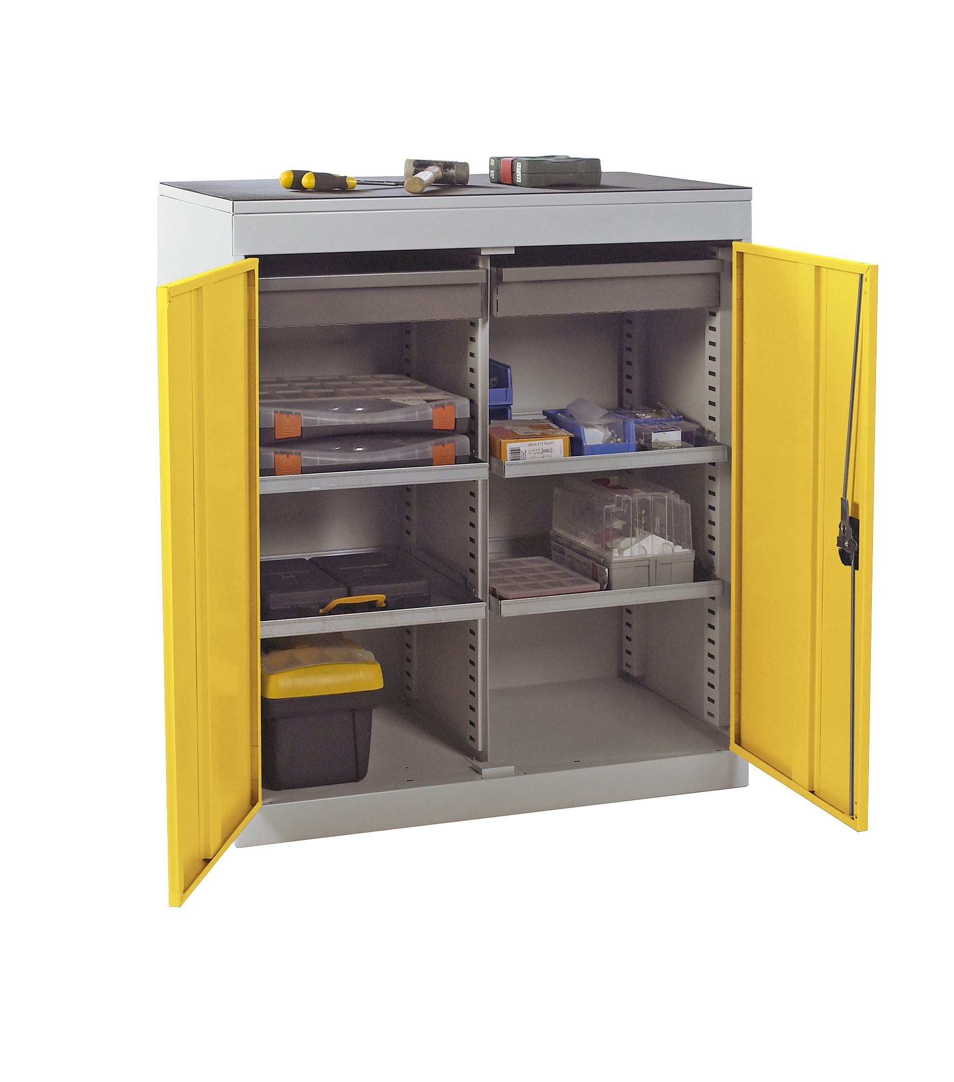 This is Steel Floor Standing Tool Cabinet 984 X 915 X 505mm manufactured by RS PRO. The manufacturer part number is 214-399. It has a floor standing trait yes . The product is made from highly stable and reliable steel. It comes in cabinet configuration. The given dimensions of the product include 984 x 915 x 505mm.
