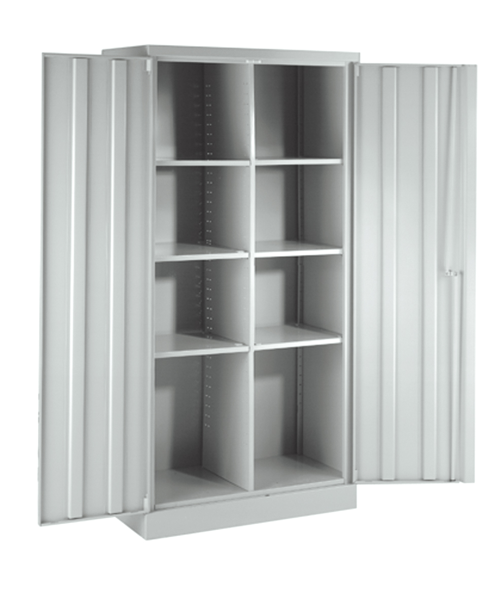 This is 2 Door Steel Floor Standing Cupboard 1820 x 915 x 505mm manufactured by RS PRO. The manufacturer part number is 214-526. It has a floor standing trait yes . It contains 2 dedicated doors . The given dimensions of the product include 1820 x 915 x 505mm. The product is made from highly stable and reliable steel. It contains 6 high quality shelves . It comes in cupboard with shelf configuration.
