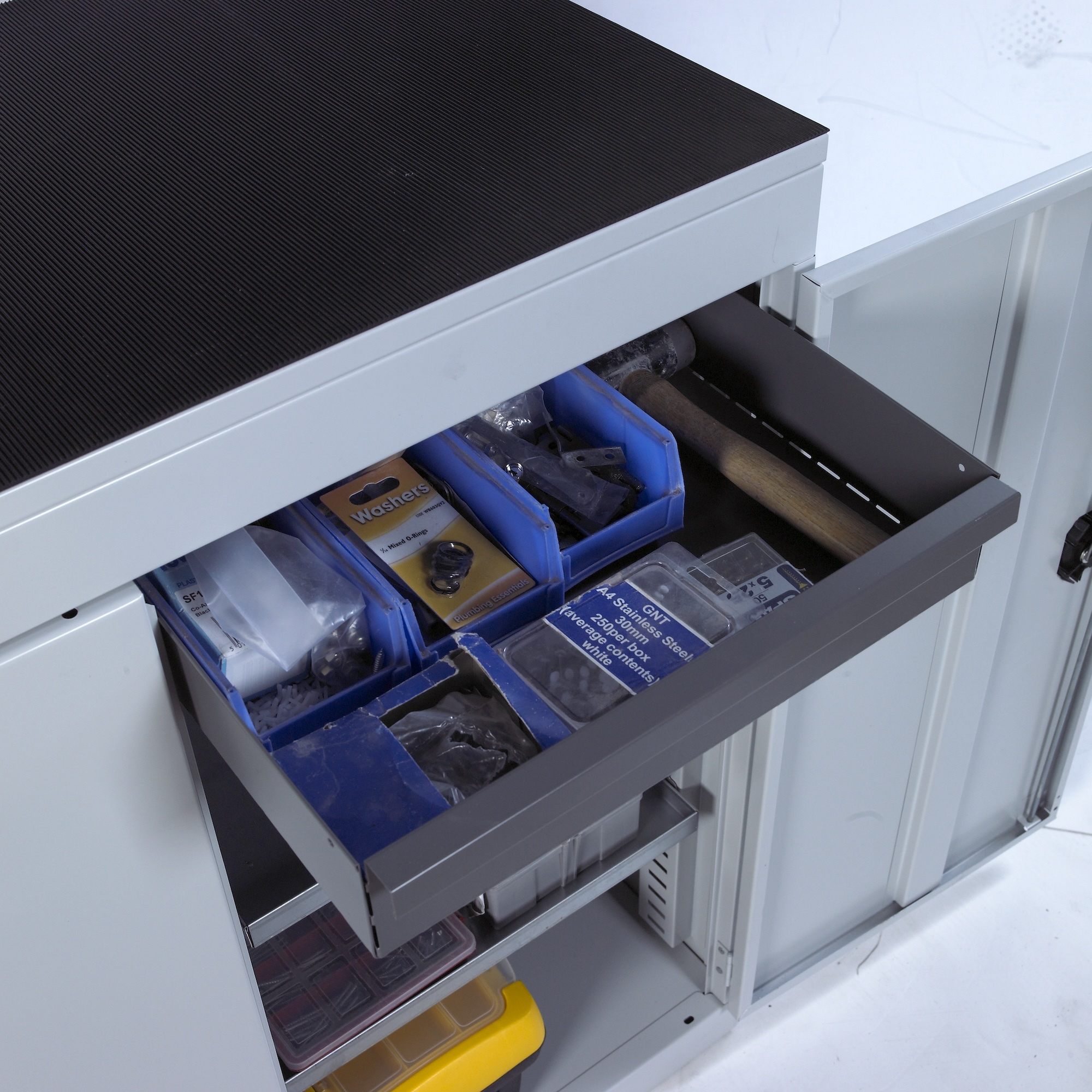 This is 1 Door 7 Drawer Steel Floor Standing Tool Cabinet 1820 x 477 x 505mm manufactured by RS PRO. The manufacturer part number is 214-584. It has a floor standing trait yes . It contains 1 dedicated doors . The given dimensions of the product include 1820 x 477 x 505mm. The product is made from highly stable and reliable steel. It contains 1 high quality shelves . It includes 7 high-quality drawers . It comes in cabinet configuration.