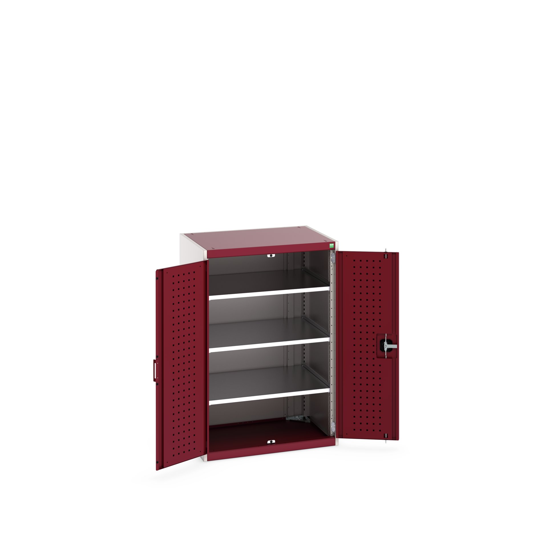 This is 2 Door Sheet Steel Floor Standing Cupboard 800 X 650 X 1200mm manufactured by Bott. The manufacturer part number is 40020112.24V. It has a floor standing trait yes . It contains 2 dedicated doors . The given dimensions of the product include 800 x 650 x 1200mm. The product is made from highly stable and reliable sheet steel. It contains 3 high quality shelves . It comes in shelf cupboard configuration.
