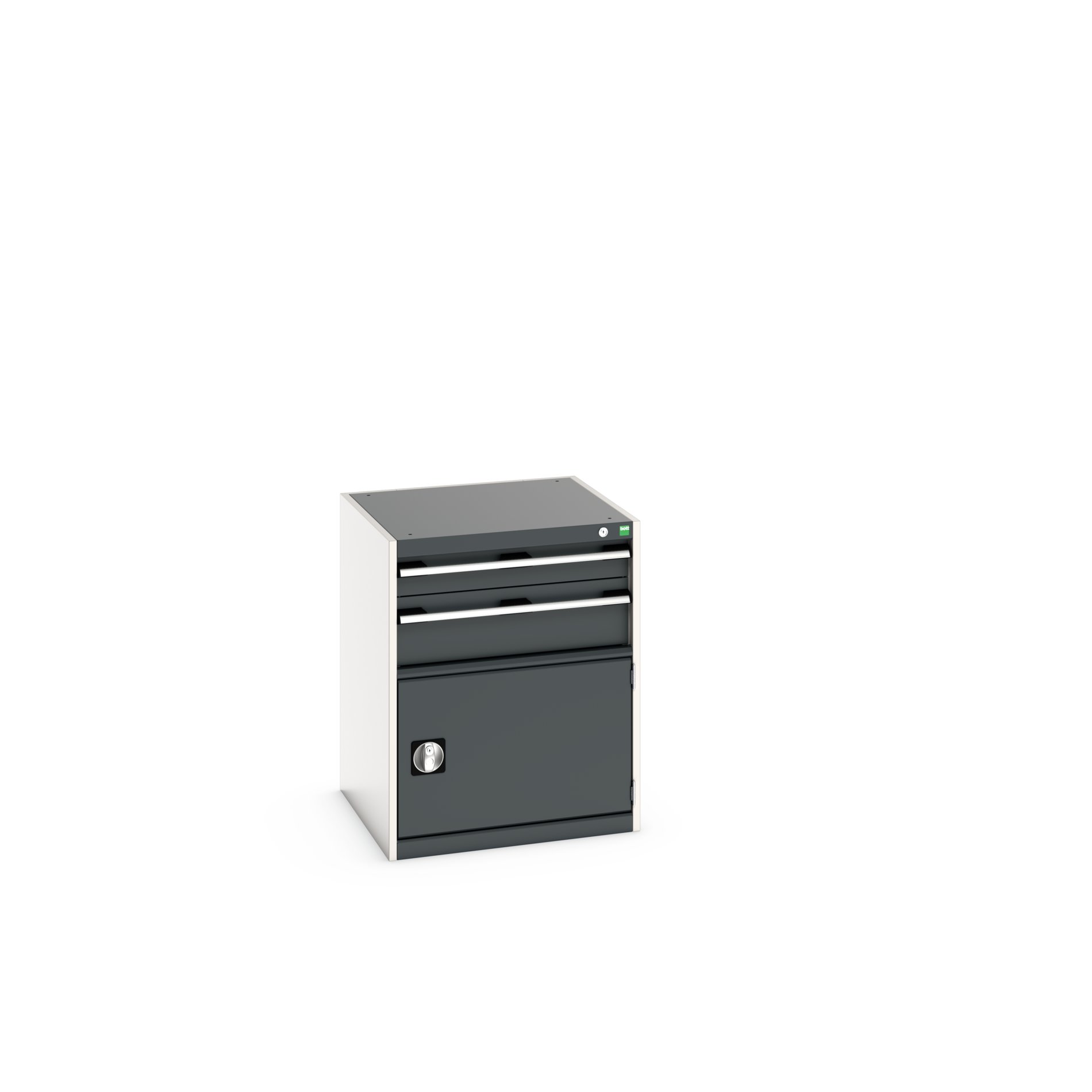 This is 1 Door 2 Drawer Sheet Steel Floor Standing Storage Cabinet 650 X 650 X 800mm manufactured by Bott. The manufacturer part number is 40019031.19V. It has a floor standing trait yes . It contains 1 dedicated doors . The given dimensions of the product include 650 x 650 x 800mm. The product is made from highly stable and reliable sheet steel. It includes 2 high-quality drawers . It comes in cabinet configuration.
