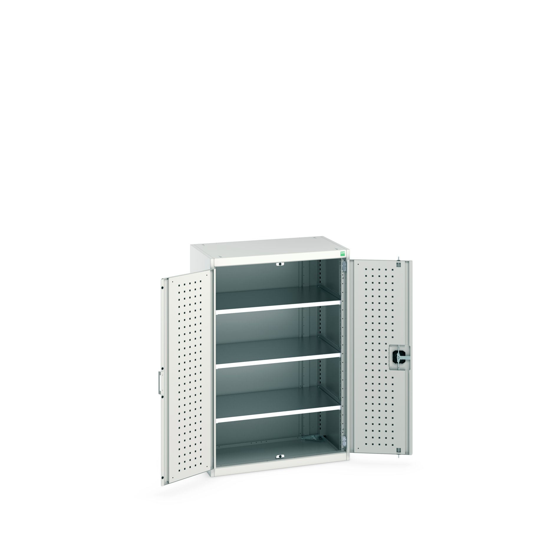 This is 2 Door Sheet Steel Floor Standing Cupboard 800 X 525 X 1200mm manufactured by Bott. The manufacturer part number is 40012079.16V. It has a floor standing trait yes . It contains 2 dedicated doors . The given dimensions of the product include 800 x 525 x 1200mm. The product is made from highly stable and reliable sheet steel. It contains 3 high quality shelves . It comes in shelf cupboard configuration.