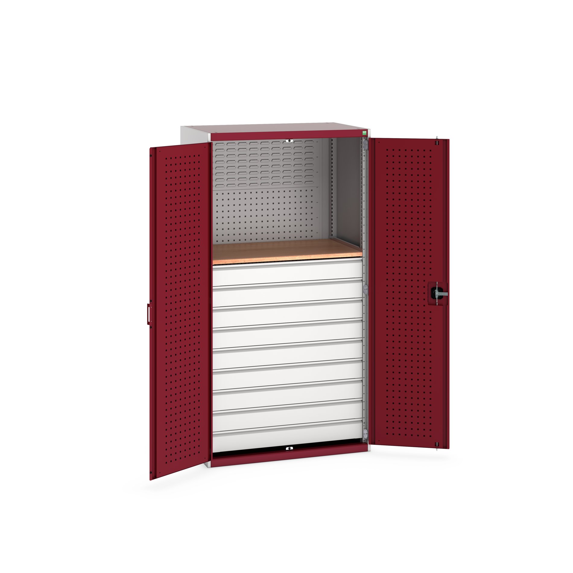 This is 2 Door 9 Drawer Sheet Steel Floor Standing Cupboard 1050 X 650 X 2000mm manufactured by Bott. The manufacturer part number is 40021204.24V. It has a floor standing trait yes . It contains 2 dedicated doors . The given dimensions of the product include 1050 x 650 x 2000mm. The product is made from highly stable and reliable sheet steel. It contains 1 high quality shelves . It includes 9 high-quality drawers . It comes in mini workshop cupboard configuration.