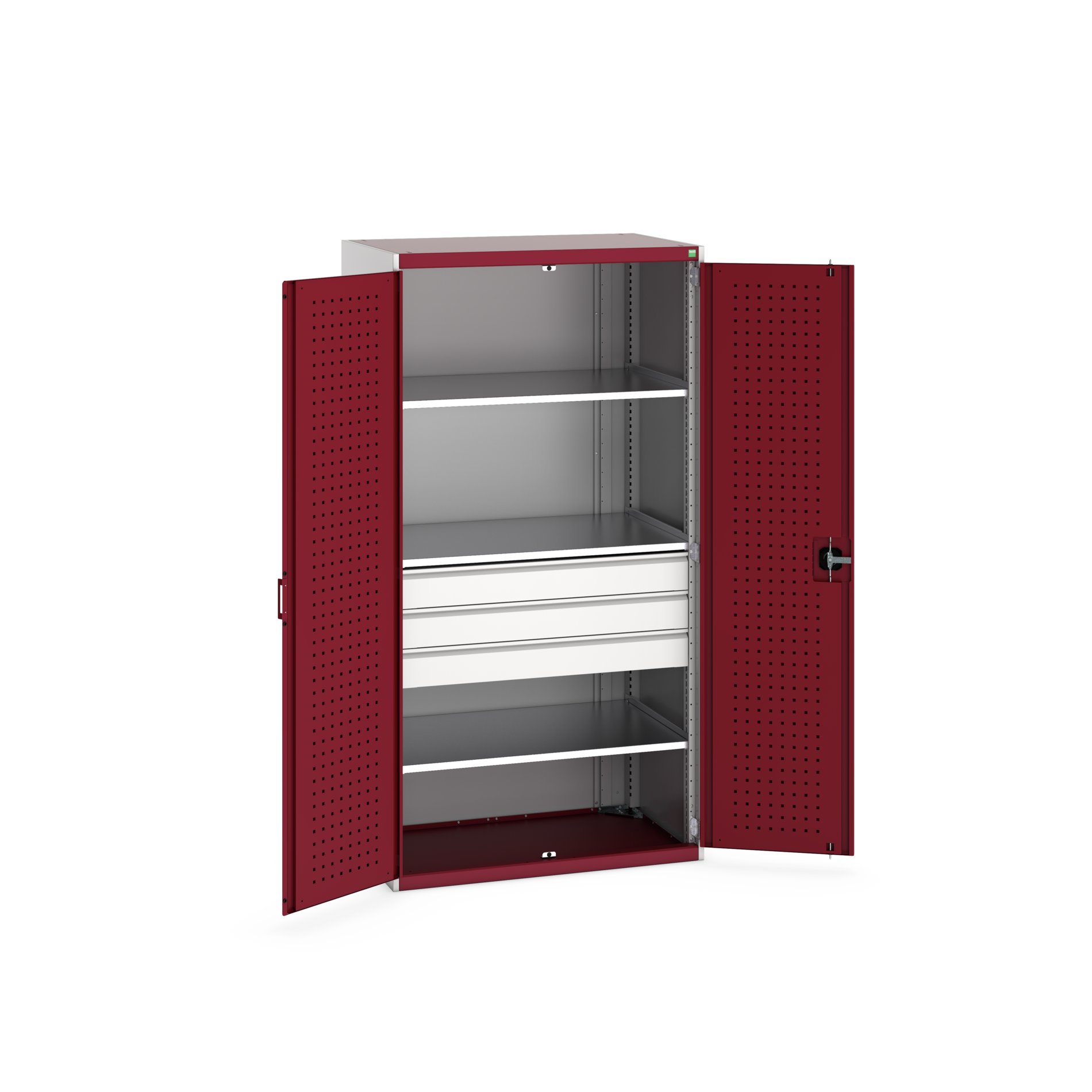 This is 2 Door 3 Drawer Sheet Steel Floor Standing Cupboard 1050 X 650 X 2000mm manufactured by Bott. The manufacturer part number is 40021109.24V. It has a floor standing trait yes . It contains 2 dedicated doors . The given dimensions of the product include 1050 x 650 x 2000mm. The product is made from highly stable and reliable sheet steel. It contains 3 high quality shelves . It includes 3 high-quality drawers . It comes in kitted cupboard configuration.