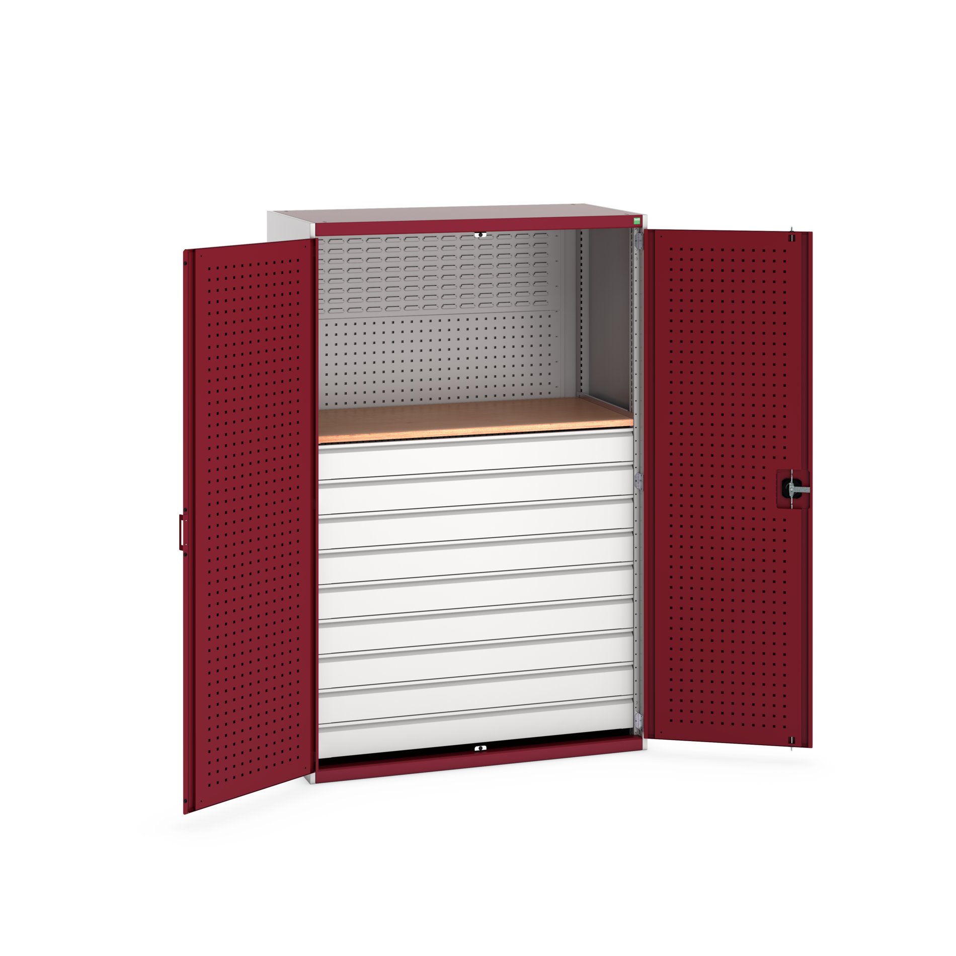 This is 2 Door 9 Drawer Sheet Steel Floor Standing Cupboard 1300 X 650 X 2000mm manufactured by Bott. The manufacturer part number is 40022093.24V. It has a floor standing trait yes . It contains 2 dedicated doors . The given dimensions of the product include 1300 x 650 x 2000mm. The product is made from highly stable and reliable sheet steel. It contains 1 high quality shelves . It includes 9 high-quality drawers . It comes in mini workshop cupboard configuration.