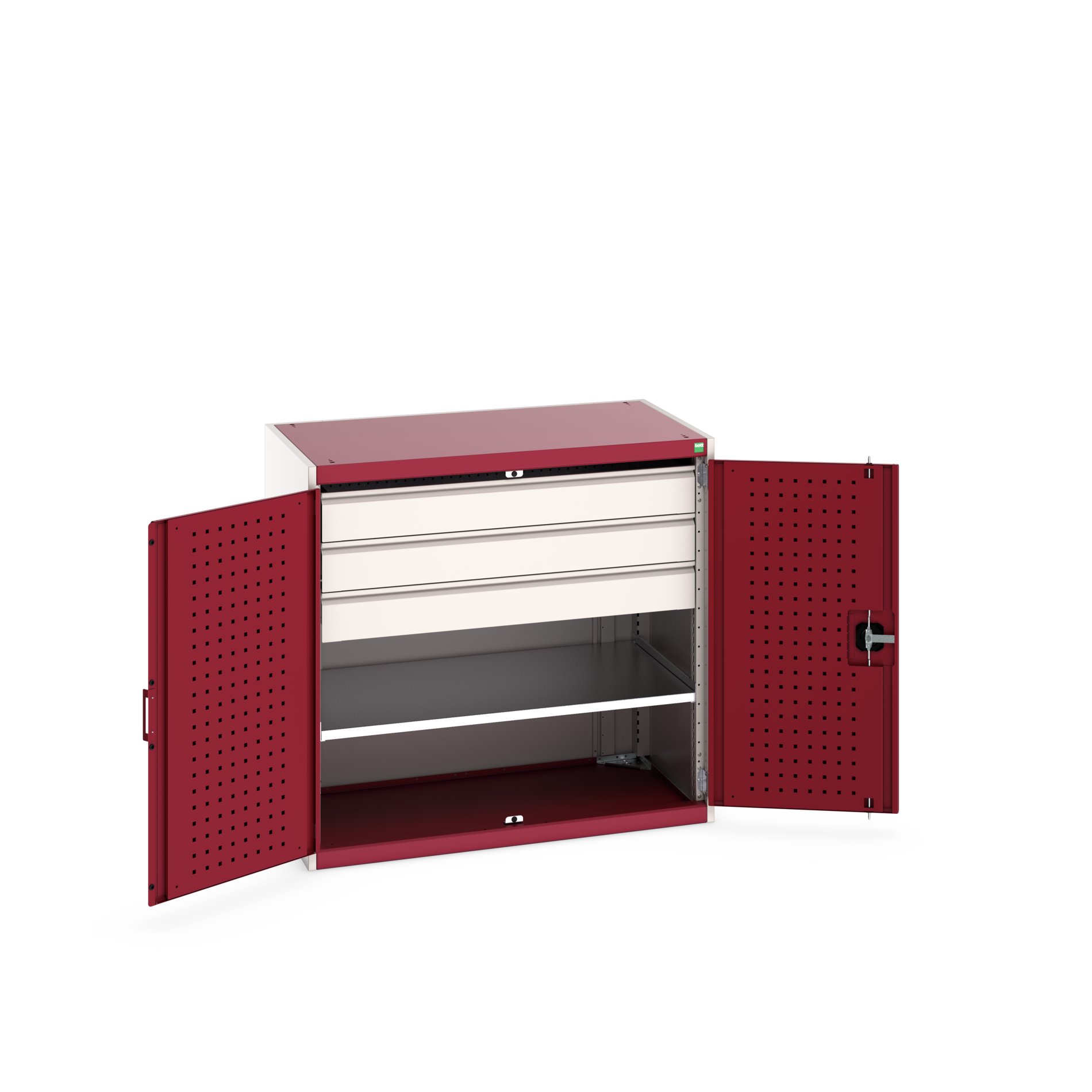 This is 2 Door 3 Drawer Sheet Steel Floor Standing Cupboard 1050 X 650 X 1000mm manufactured by Bott. The manufacturer part number is 40021203.24V. It has a floor standing trait yes . It contains 2 dedicated doors . The given dimensions of the product include 1050 x 650 x 1000mm. The product is made from highly stable and reliable sheet steel. It contains 1 high quality shelves . It includes 3 high-quality drawers . It comes in kitted cupboard configuration.