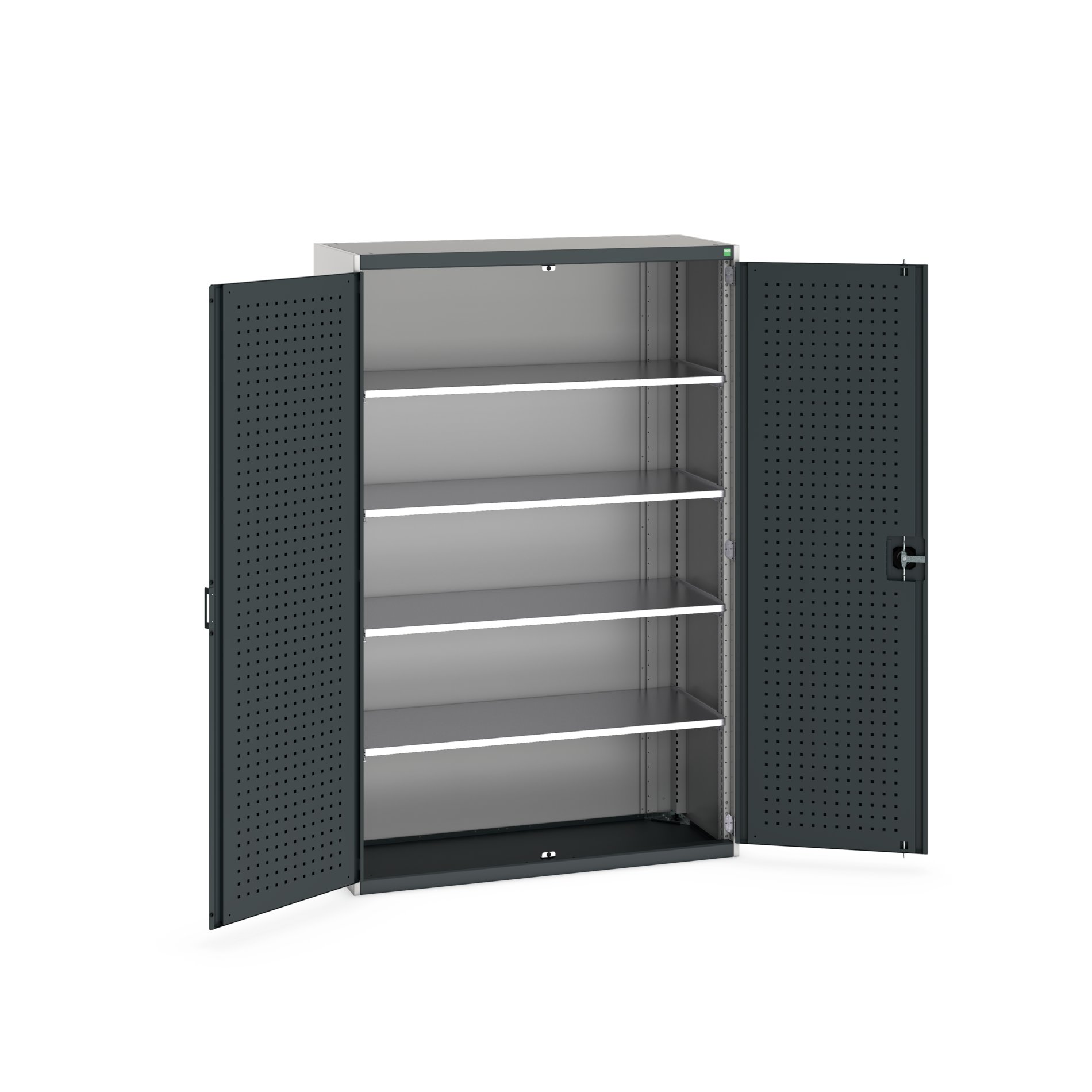 This is 2 Door Sheet Steel Floor Standing Cupboard 1300 X 525 X 2000mm manufactured by Bott. The manufacturer part number is 40014053.19V. It has a floor standing trait yes . It contains 2 dedicated doors . The given dimensions of the product include 1300 x 525 x 2000mm. The product is made from highly stable and reliable sheet steel. It contains 4 high quality shelves . It comes in shelf cupboard configuration.