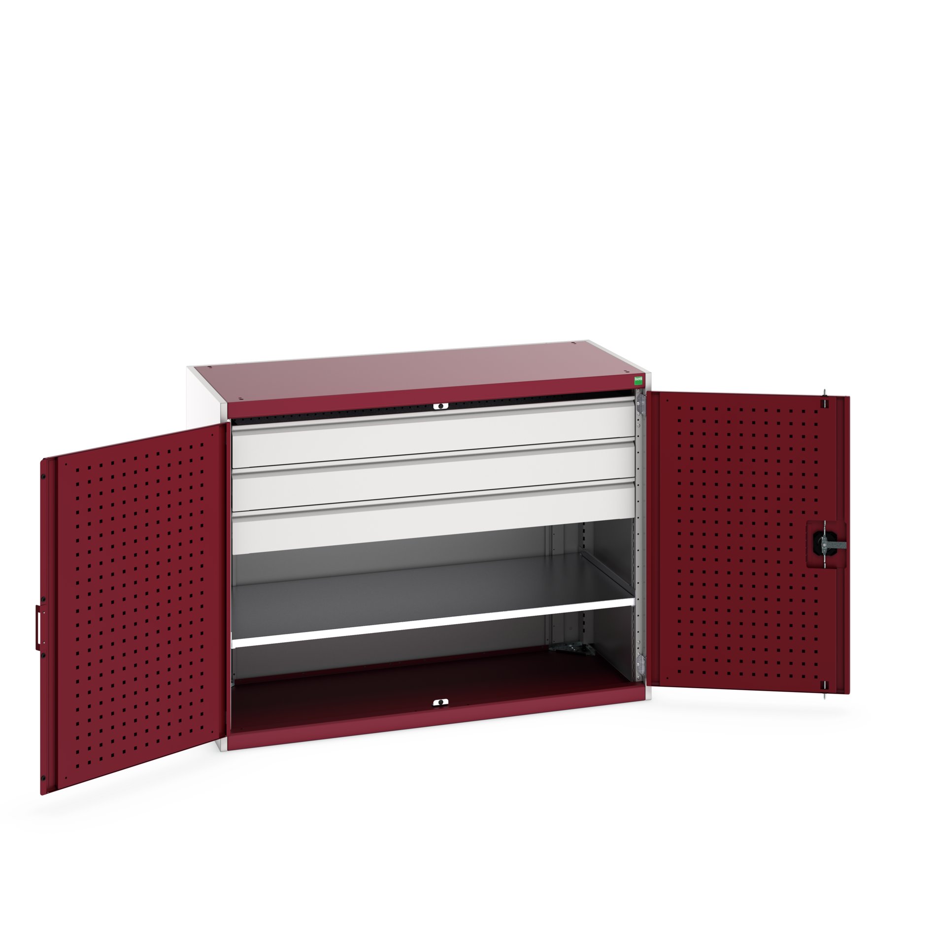This is 2 Door 3 Drawer Sheet Steel Floor Standing Cupboard 1300 X 650 X 1000mm manufactured by Bott. The manufacturer part number is 40022085.24V. It has a floor standing trait yes . It contains 2 dedicated doors . The given dimensions of the product include 1300 x 650 x 1000mm. The product is made from highly stable and reliable sheet steel. It contains 1 high quality shelves . It includes 3 high-quality drawers . It comes in kitted cupboard configuration.