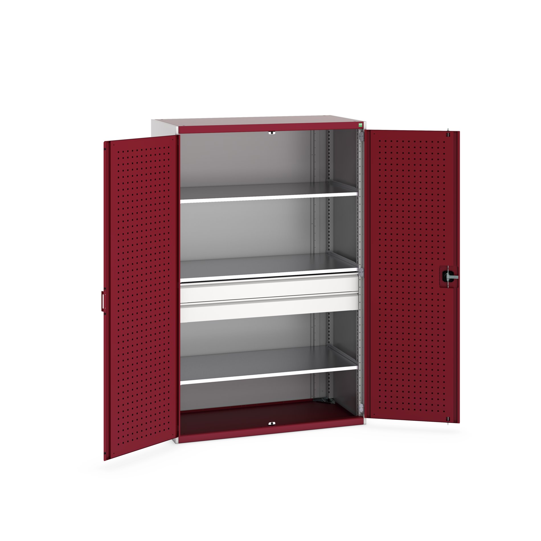 This is 2 Door 2 Drawer Sheet Steel Floor Standing Cupboard 1300 X 650 X 2000mm manufactured by Bott. The manufacturer part number is 40022139.24V. It has a floor standing trait yes . It contains 2 dedicated doors . The given dimensions of the product include 1300 x 650 x 2000mm. The product is made from highly stable and reliable sheet steel. It contains 3 high quality shelves . It includes 2 high-quality drawers . It comes in kitted cupboard configuration.