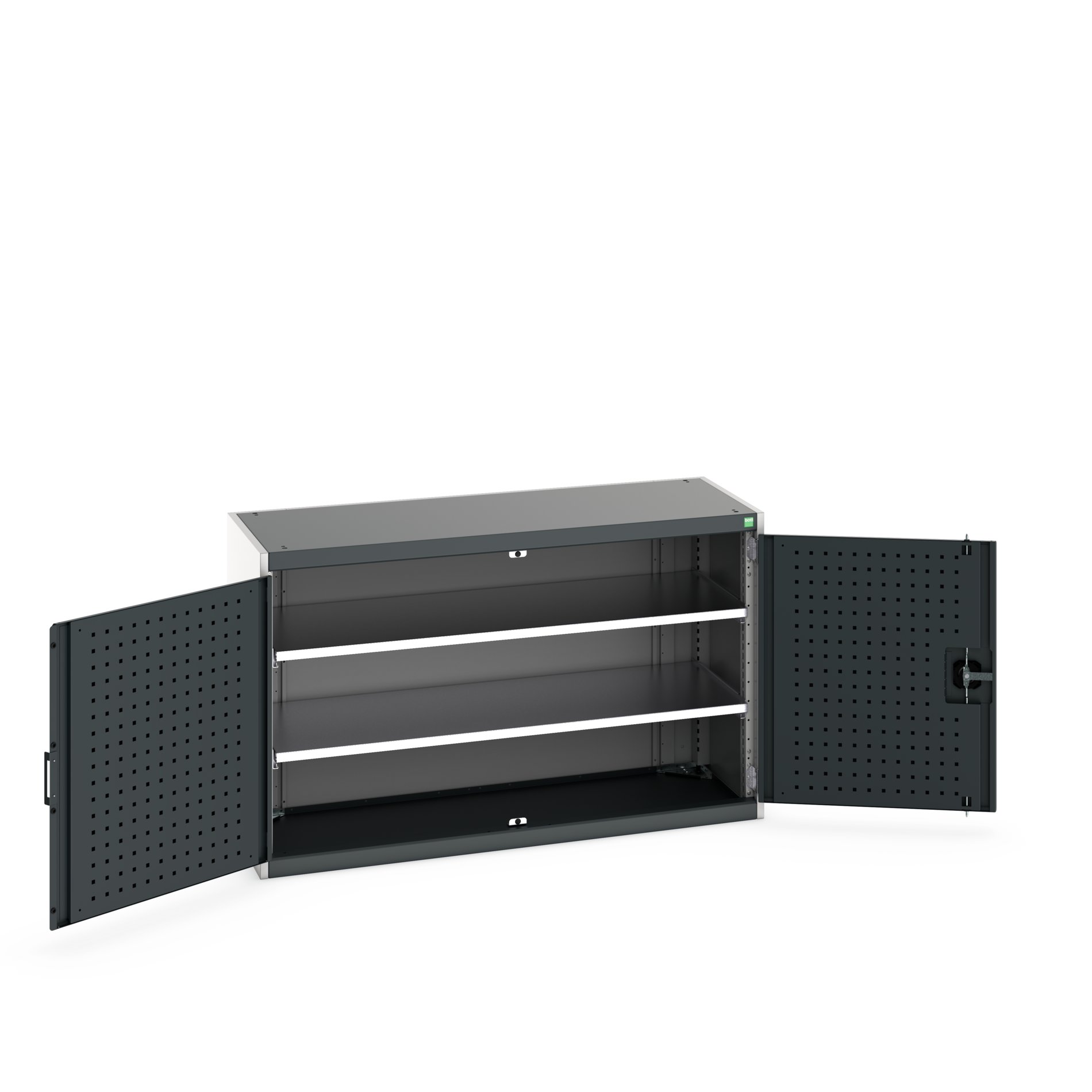 This is 2 Door Sheet Steel Floor Standing Cupboard 1300 X 525 X 800mm manufactured by Bott. The manufacturer part number is 40014046.19V. It has a floor standing trait yes . It contains 2 dedicated doors . The given dimensions of the product include 1300 x 525 x 800mm. The product is made from highly stable and reliable sheet steel. It contains 2 high quality shelves . It comes in cabinet configuration.