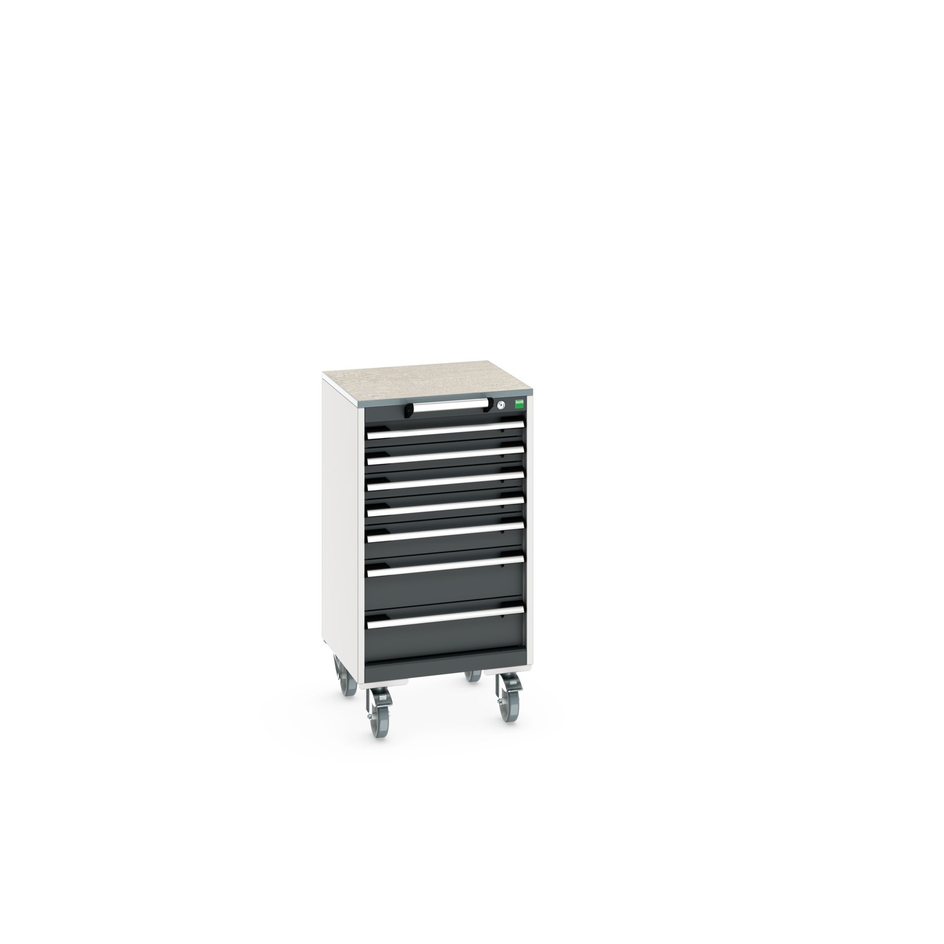 This is 7 Drawer Sheet Steel Floor Standing Cabinet 525 X 525 X 990mm manufactured by Bott. The manufacturer part number is 40402142.19V. It has a floor standing trait yes . It includes 7 high-quality drawers . The product is made from highly stable and reliable sheet steel. It comes in cabinet configuration. The given dimensions of the product include 525 x 525 x 990mm.