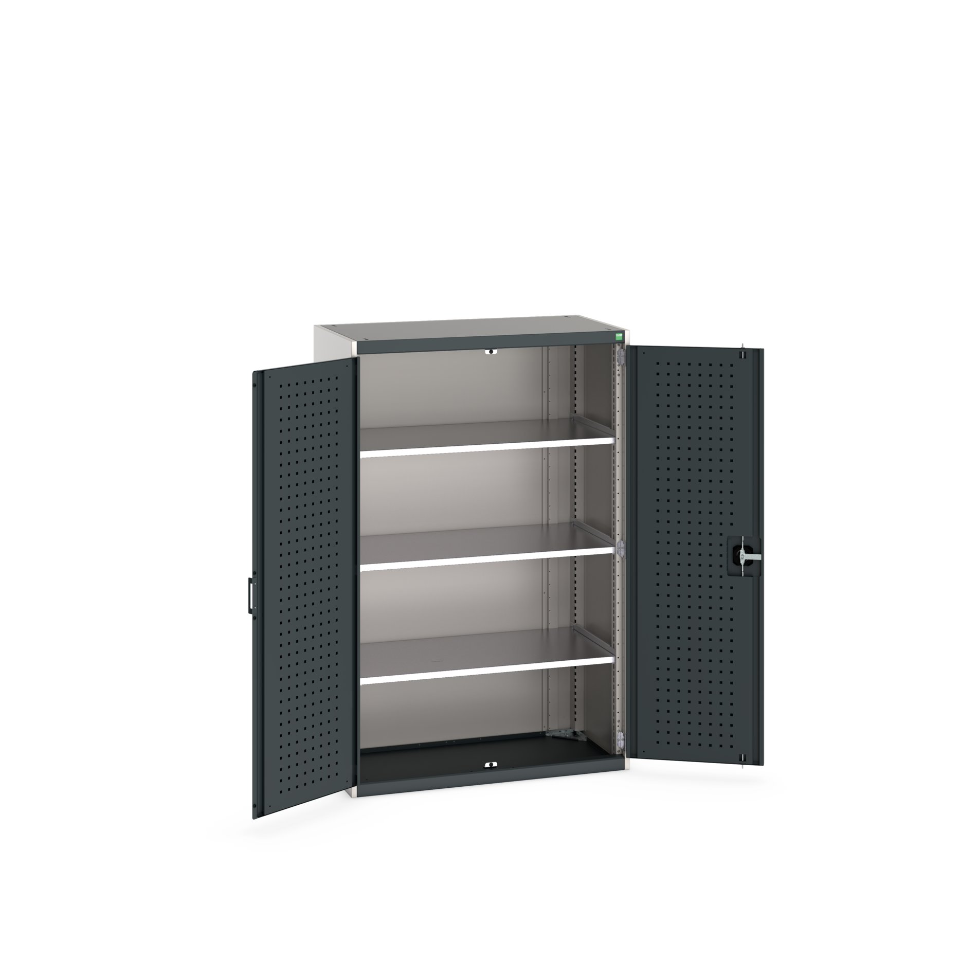 This is 2 Door Sheet Steel Floor Standing Cupboard 1050 X 525 X 1000mm manufactured by Bott. The manufacturer part number is 40013050.19V. It has a floor standing trait yes . It contains 2 dedicated doors . The given dimensions of the product include 1050 x 525 x 1000mm. The product is made from highly stable and reliable sheet steel. It contains 3 high quality shelves . It comes in shelf cupboard configuration.