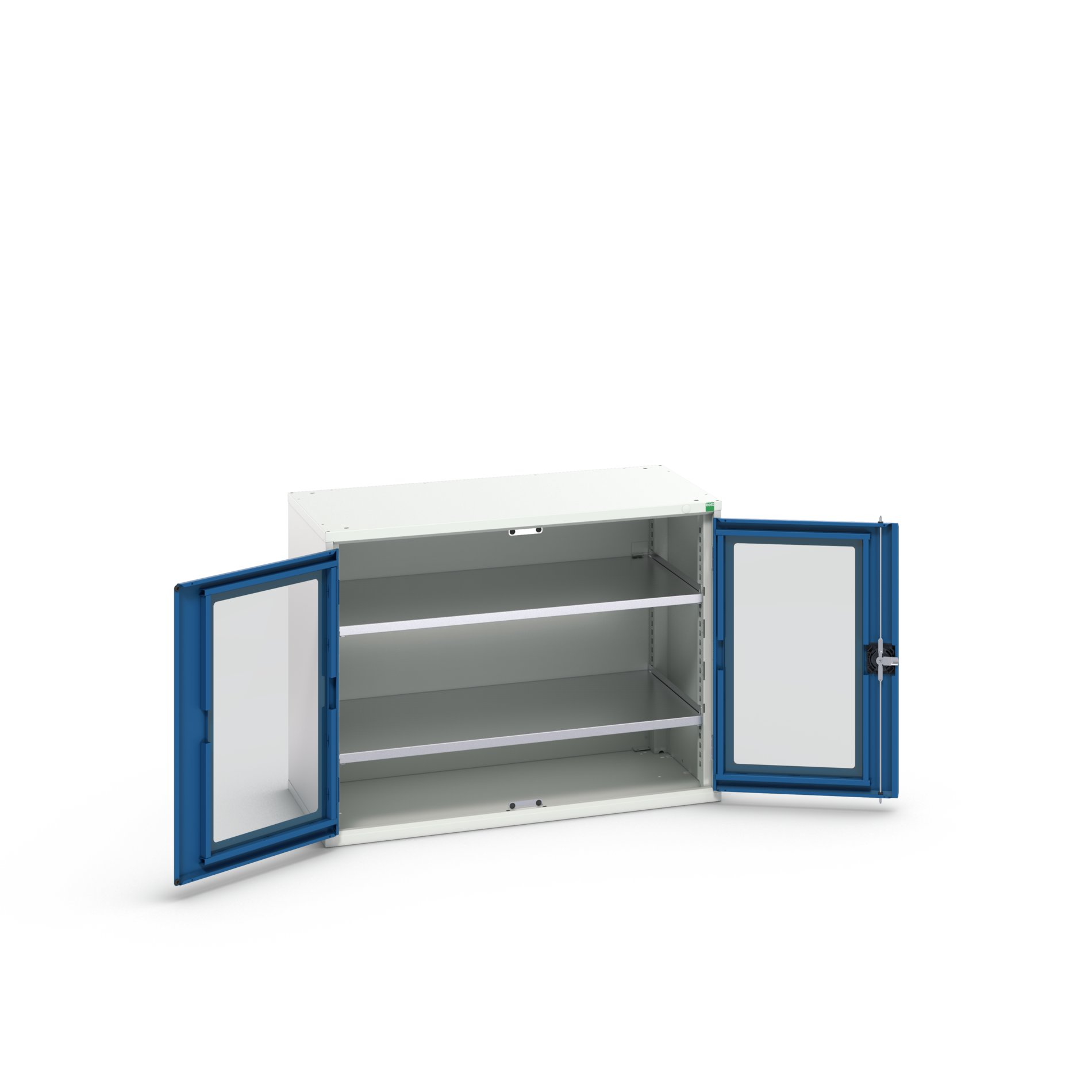 This is 2 Door Sheet Steel Cupboard 1050 x 550 x 800mm manufactured by Bott. The manufacturer part number is 16926274.11. It contains 2 dedicated doors . The product is made from highly stable and reliable sheet steel. It comes in shelf cupboard configuration. The given dimensions of the product include 1050 x 550 x 800mm. It contains 2 high quality shelves .