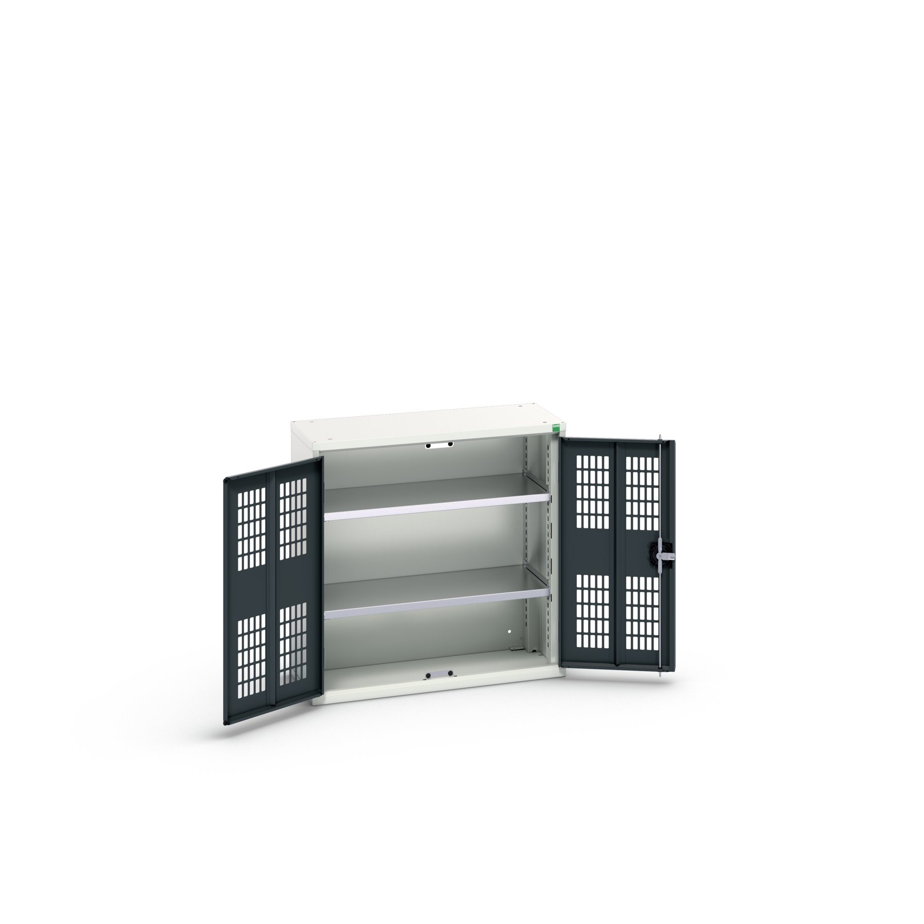 This is 2 Door Sheet Steel Cupboard 800 x 350 x 800mm manufactured by Bott. The manufacturer part number is 16926730.19. It contains 2 dedicated doors . The product is made from highly stable and reliable sheet steel. It comes in shelf cupboard configuration. The given dimensions of the product include 800 x 350 x 800mm. It contains 2 high quality shelves .