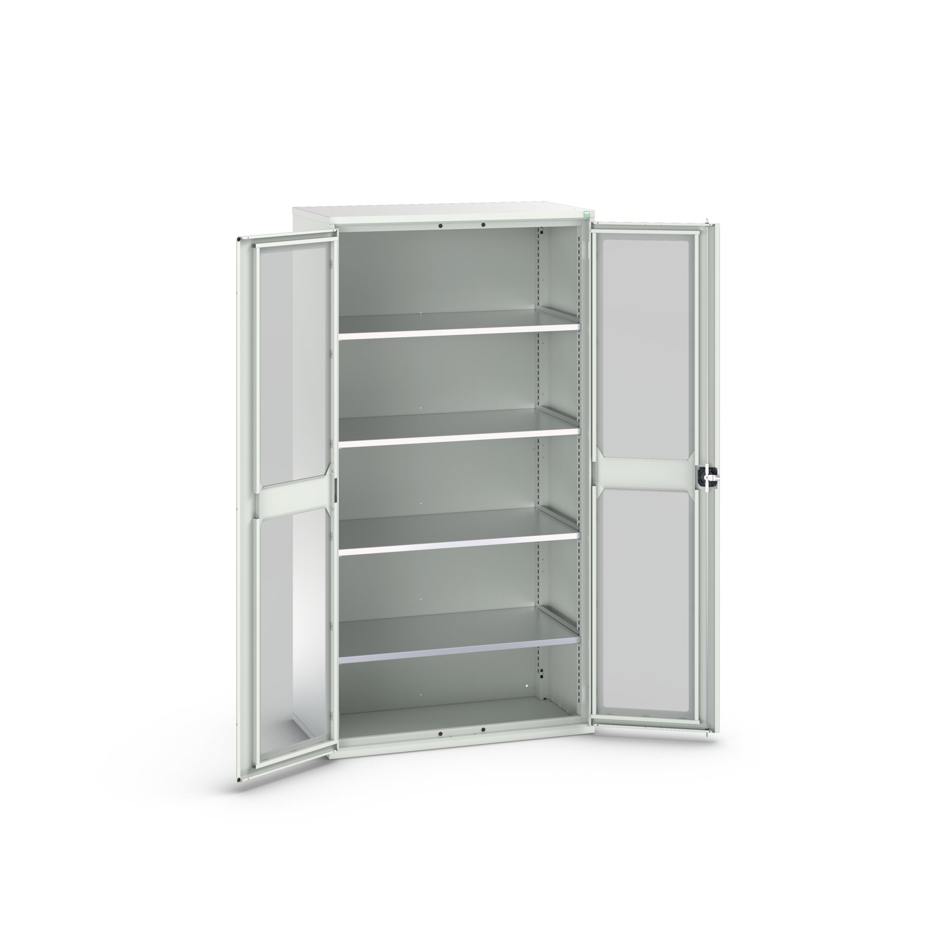 This is 2 Door Sheet Steel Cupboard 1050 x 550 x 2000mm manufactured by Bott. The manufacturer part number is 16926277.16. It contains 2 dedicated doors . The product is made from highly stable and reliable sheet steel. It comes in shelf cupboard configuration. The given dimensions of the product include 1050 x 550 x 2000mm. It contains 4 high quality shelves .
