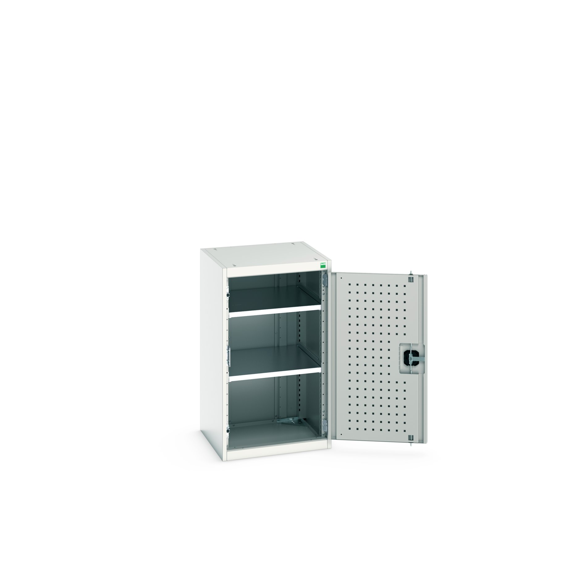This is 1 Door Sheet Steel Cupboard 525 x 525 x 900mm manufactured by Bott. The manufacturer part number is 40010125.16V. It contains 1 dedicated doors . The product is made from highly stable and reliable sheet steel. It comes in shelf cupboard configuration. The given dimensions of the product include 525 x 525 x 900mm. It contains 2 high quality shelves .