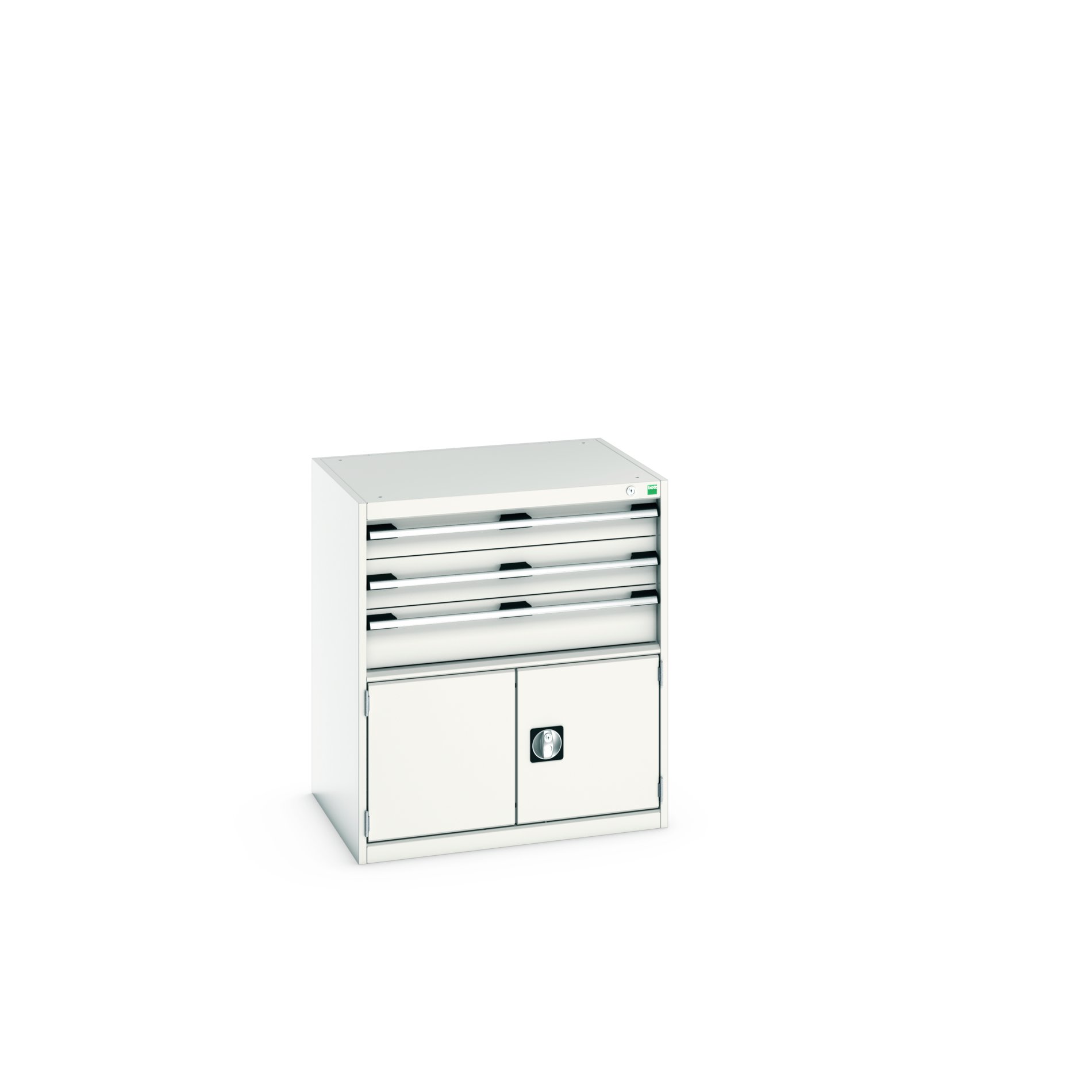 This is 2 Door 3 Drawer Sheet Steel Floor Standing Storage Cabinet 800 X 650 X 900mm manufactured by Bott. The manufacturer part number is 40020033.16V. It has a floor standing trait yes . It contains 2 dedicated doors . The given dimensions of the product include 800 x 650 x 900mm. The product is made from highly stable and reliable sheet steel. It includes 3 high-quality drawers . It comes in cabinet configuration.